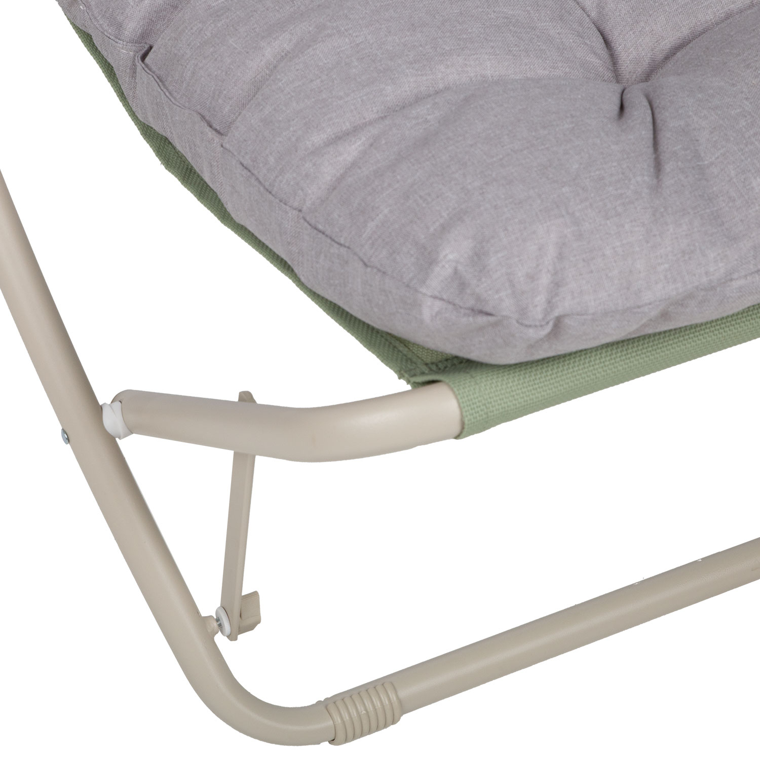 Supamųjų kėdžių rėmas pagamintas iš plieno ir padengtas smėlio spalvos milteline danga.