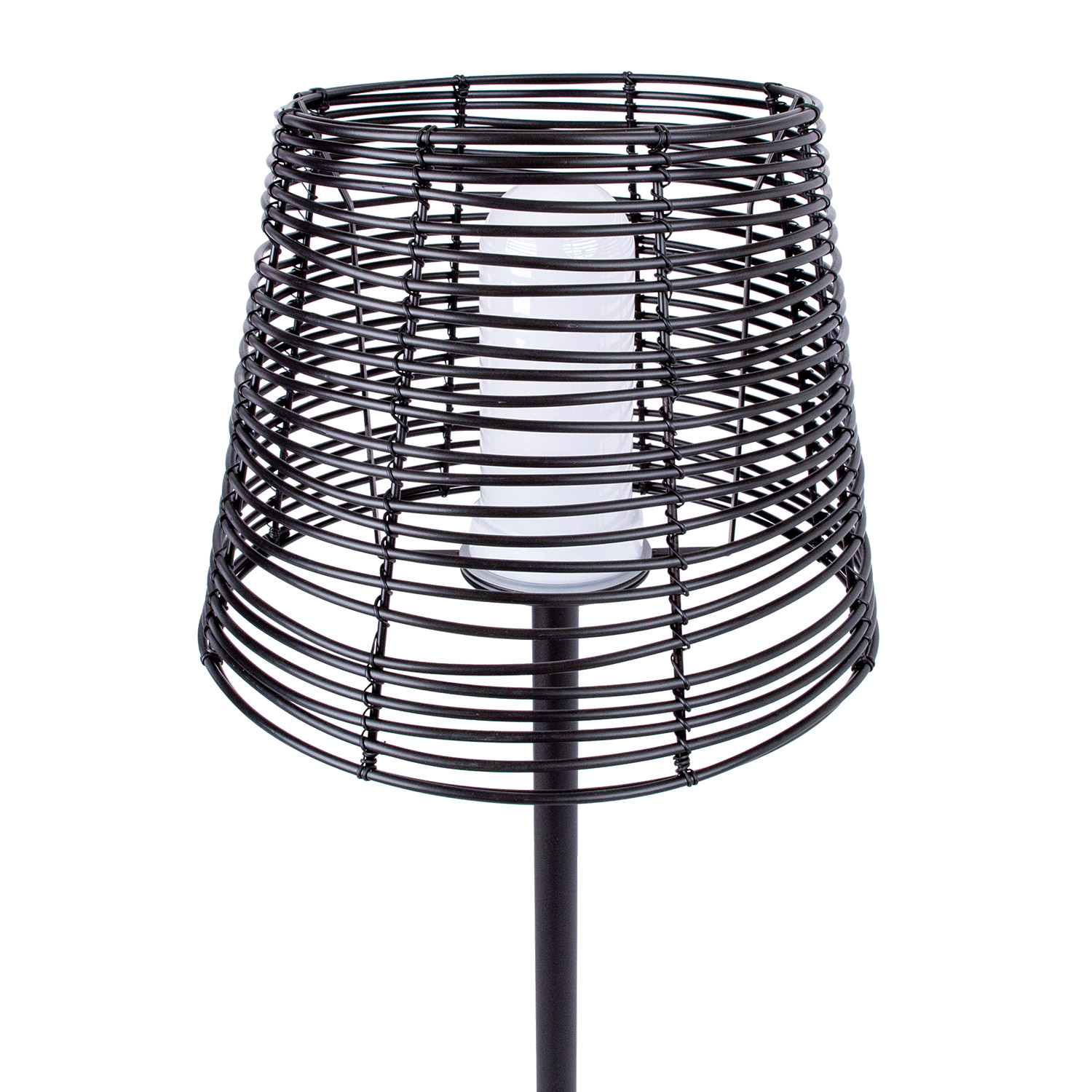 Lauko šviestuvas MAGIC 35x35xH145cm, juodos spalvos. Šviestuvo pagrindas pagamintas iš anoduoto plieno ir padengtas juoda milteline danga. Pagrindo skersmuo yra 30 cm, plieninio lempos pagrindo skersmuo – 25 mm. Šviestuvo gaubtas padengtas stilingu plastikiniu pynute. E27-CFL / 18 W pagrindas. Lemputė į komplektą neįtraukta. Lemputės lizdą dengia drėgmei atsparus kupolas. 3 m ilgio maitinimo laidas. Tinka naudoti tiek patalpose, tiek lukuose.