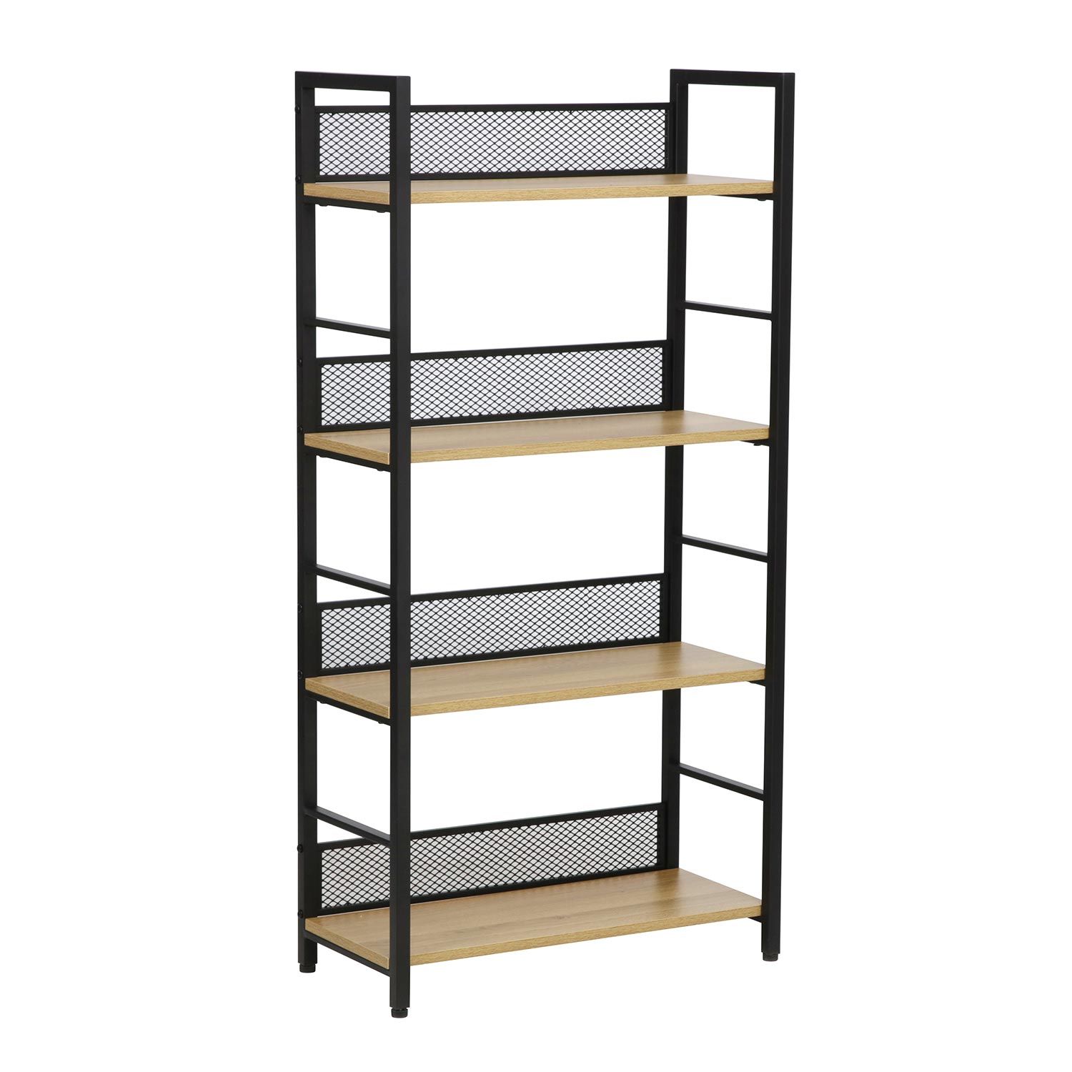 Lentyna HECTOR 60x28xH121cm, pelenų/juoda. Lentynos rėmas pagamintas iš metalo ir padengtas juoda milteline danga. Lentynos pagamintos iš melamino plokštės su salos apvalkalu.