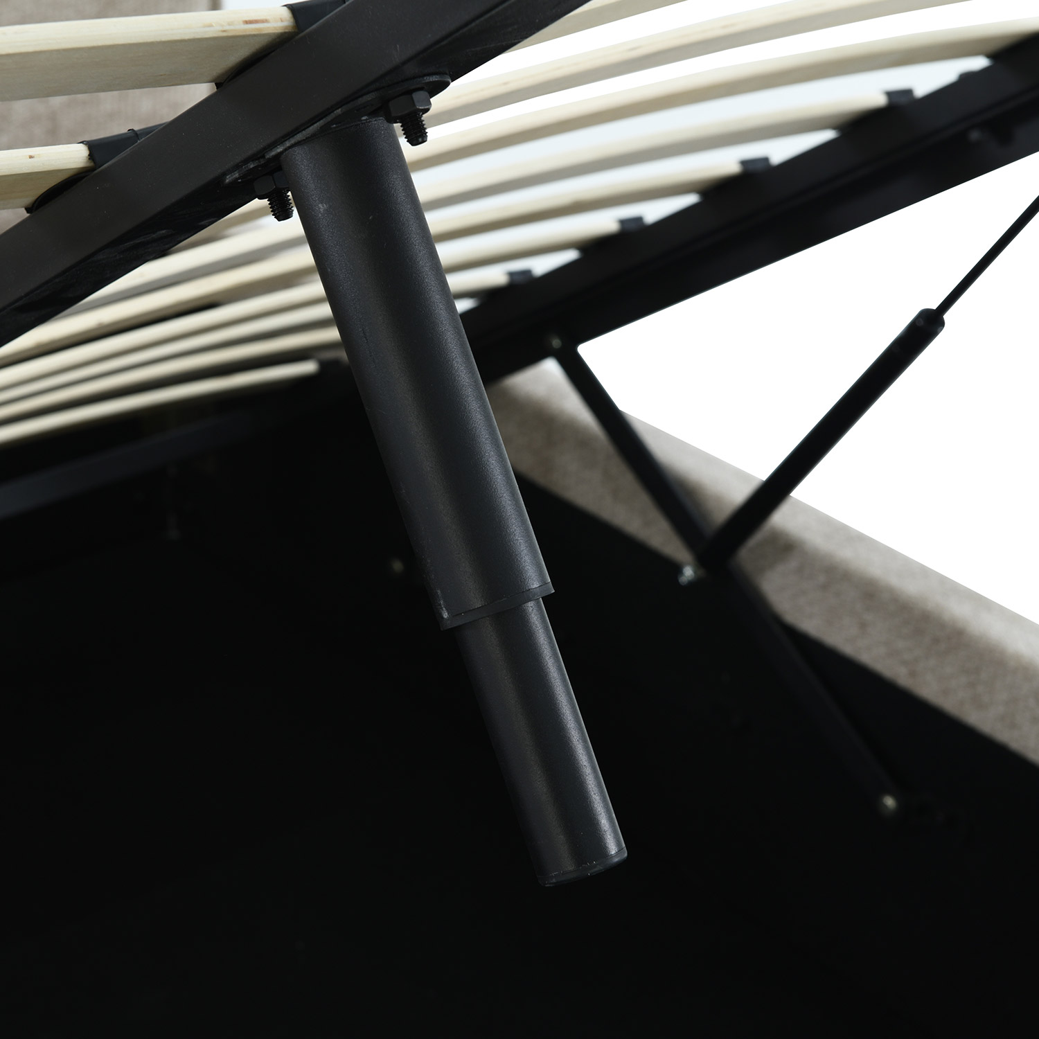 Lovos pagrindo rėmo viduje yra didelė daiktadėžė, kuri atsidaro iš kojūgalio.