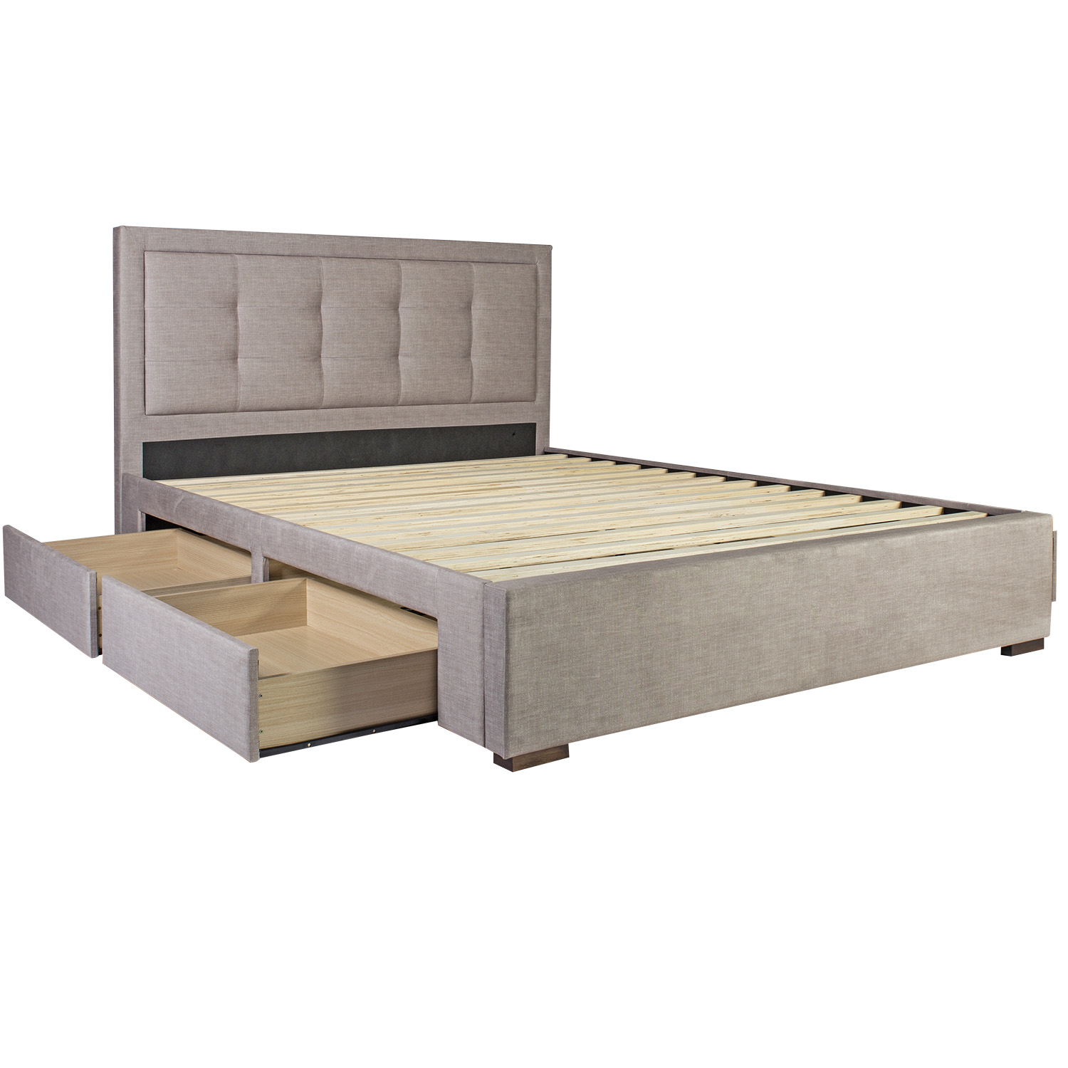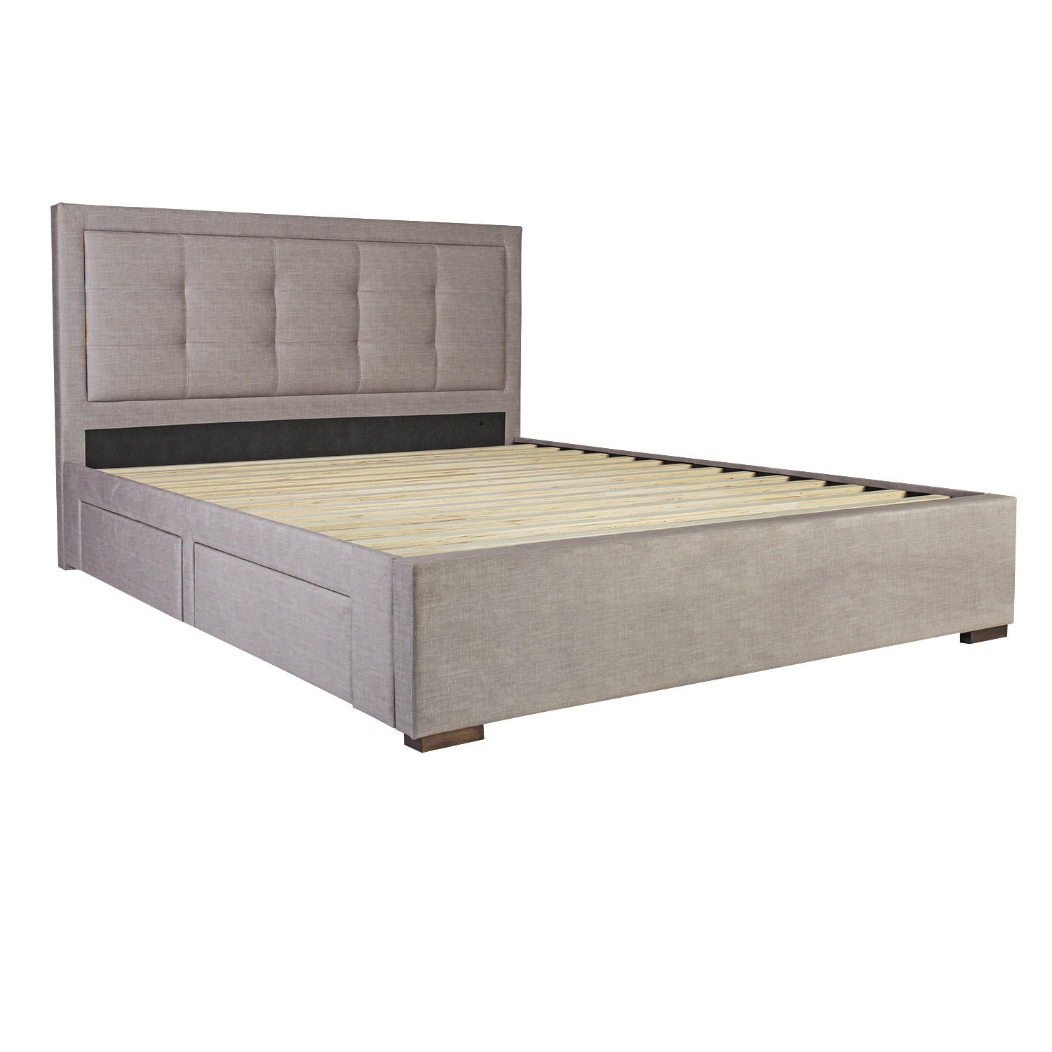 Lova DUKE 160×200 cm, be čiužinio, smėlio spalvos˛. Lova turi 4 erdvius stalčius apatinio rėmo viduje. Stalčiai juda ant metalinių slenksčių. Lovos korpusas pagamintas iš MDF plokštės ir aptrauktas smėlio spalvos poliesterio audiniu. Lova turi kapučino spalvos medžio masyvo kojas. Į komplektą įeina lovos galvūgalis ir kojūgalis. Čiužinys į komplektą neįtrauktas. Čiužinio matmenys 160×200 cm. Bendrieji lovos matmenys yra 164,5x215xH110 cm.