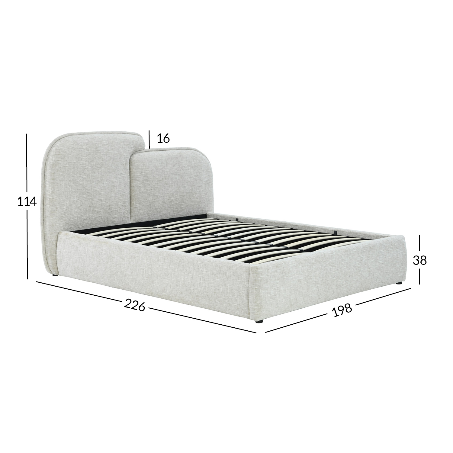 Bendrieji lovos matmenys: 198x226xH98/114 cm. Lovos rėmo aukštis 38 cm.