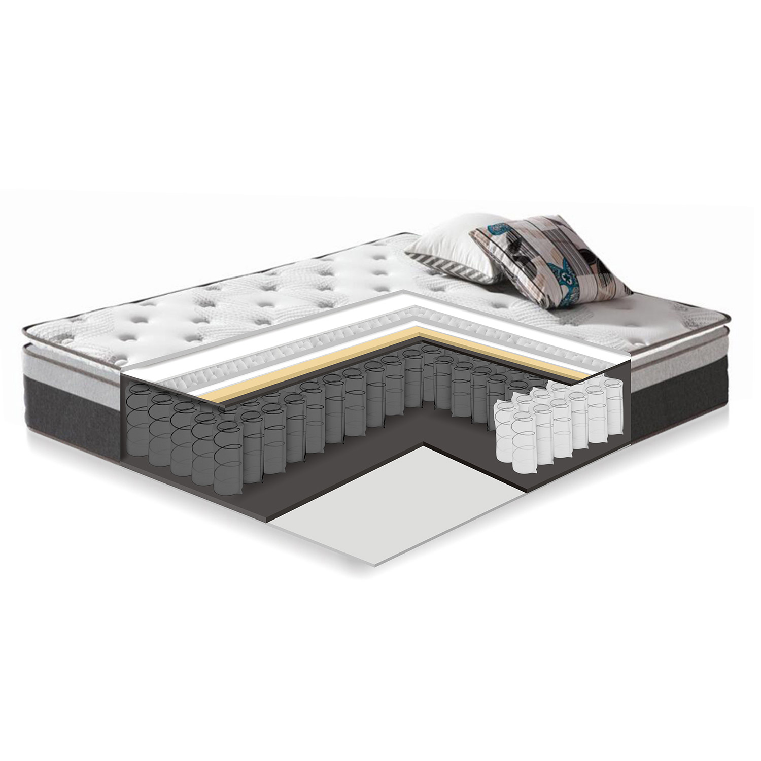 Lova GLOSSY 160×200 cm, su čiužiniu HARMONY TOP, pilka. PERFECT SLEEP BY HOME4YOU. Lovos rėmo viduje yra erdvūs laikymo skyriai. Stalčiuose galima patogiai laikyti antklodes, pagalves ir visa kita, ko gali prireikti. Lovoje iš viso yra keturi stalčiai: po vieną kiekvienoje pusėje ir du kojūgalyje. Stalčiai stumdomi ant metalinių šliaužiklių. Lovos korpusas pagamintas iš MDF plokštės ir aptrauktas poliesterio audiniu. Lova turi medines kojeles. Į komplektą įeina galvūgalis ir lovos pagrindas. Į komplektą įeina čiužinys. Vidutinio standumo čiužinys turi supakuotas prabangias kišenines spyruokles (1,9 mm / 2,2 mm apačioje), padengtas veltinio sluoksniu ir 3,5 cm porolono sluoksniu. Spyruoklių bloko aukštis – 26 cm. Prie spyruoklinio čiužinio yra pritvirtintas čiužinio užvalkalas, užtikrinantis papildomą komfortą ir atsipalaidavimą. Čiužinio užvalkalas pagamintas iš aukštos kokybės 3,5 cm profiliuoto putų poliuretano, kuris praleidžia orą ir drėgmę. Lengvas elastinio audinio čiužinio užvalkalas pagamintas iš odai draugiškos ir minkštos medvilnės ir poliesterio (audinio svoris 280 g/m2). Audinys, veltinis ir vatinas atitinka tarptautinį „Oeko-Tex 100” standartą. Čiužinys supakuotas į ritinėlį, kad jį būtų lengva transportuoti. Kad čiužinys atgautų pradinę formą, jam reikia iki 2 valandų. Atsargiai nuimkite plastikinę plėvelę ir padėkite čiužinį ant lovos. Čiužinio matmenys 160x200xH33 cm. Lovos matmenys 165×216,5xH116 cm.