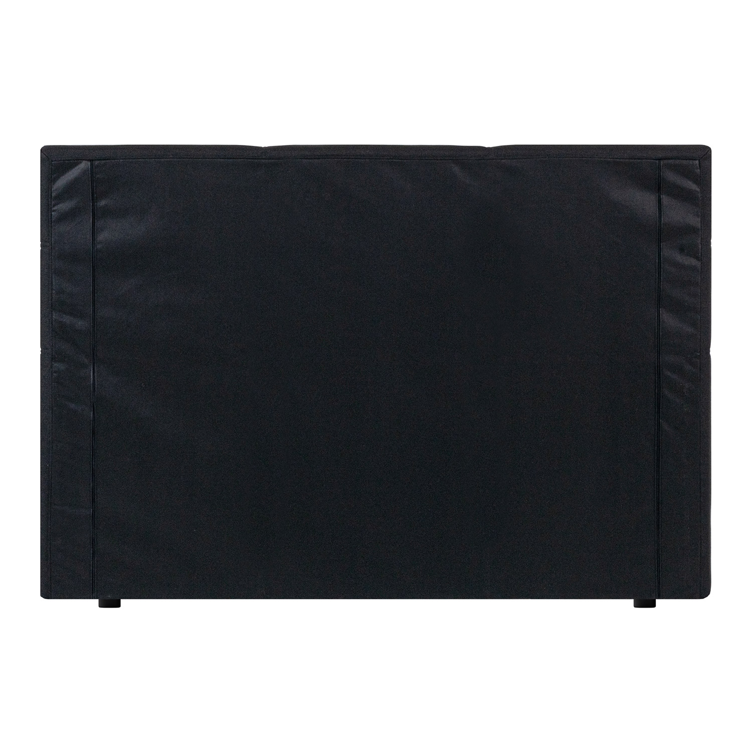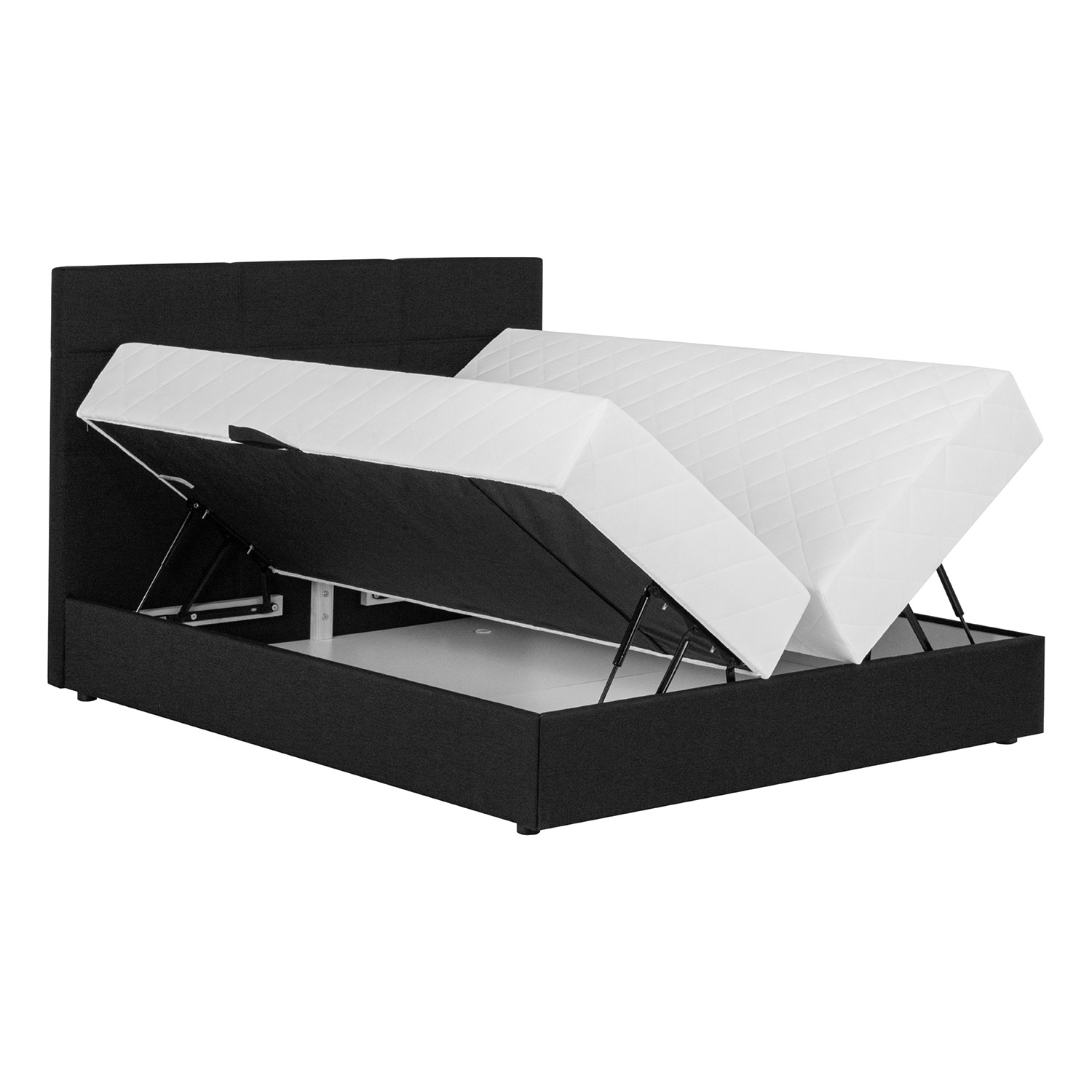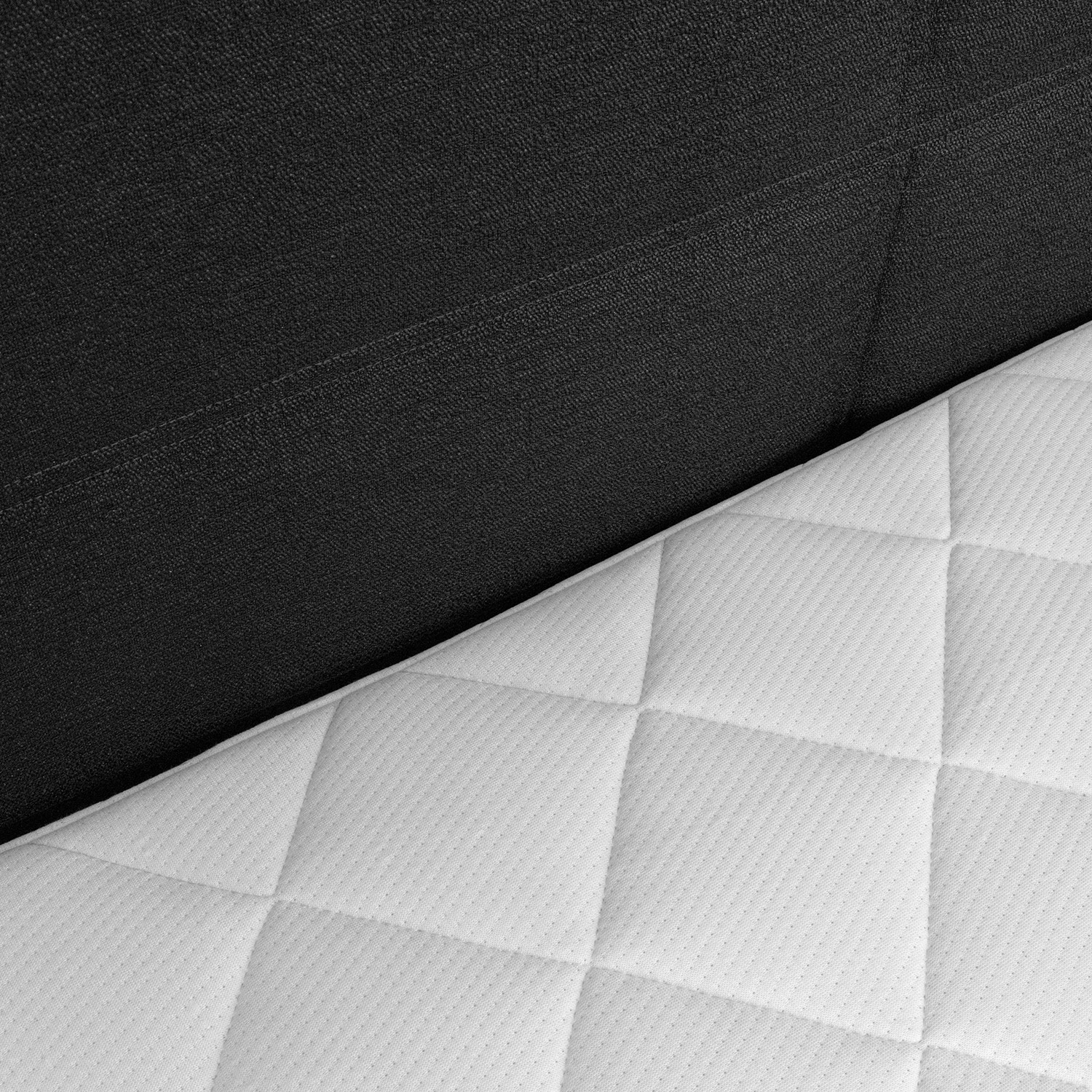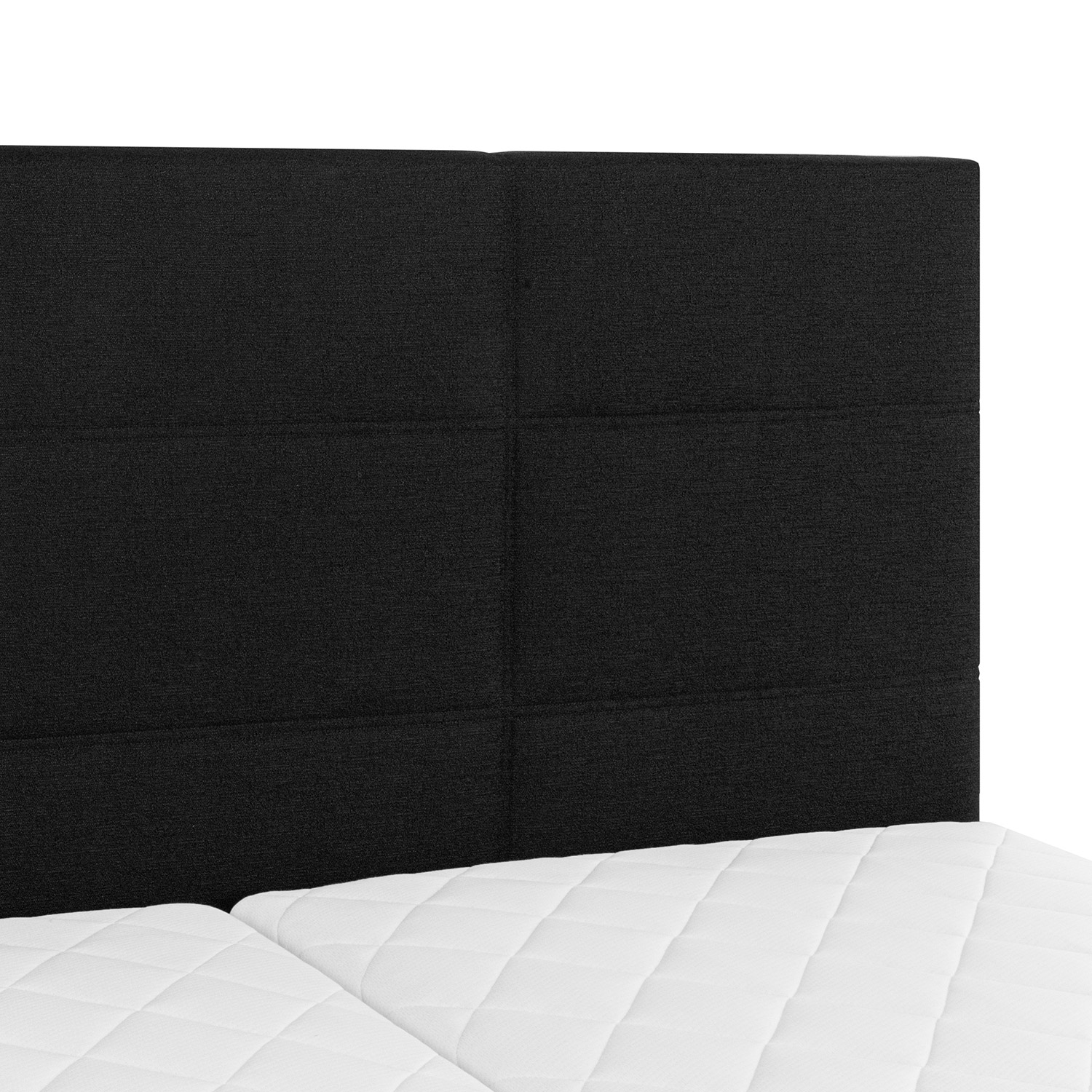 Kontinentinė lova LEIKO 160×200 cm, juoda. Lovoje yra kišeninis spyruoklinis čiužinys, 210 spyruoklių/m2. Spyruoklių aukštis – 13 cm. Spyruoklės padengtos 2 cm storio porolono sluoksniu. Po lova yra didelė daiktadėžė, pagaminta iš medžio masyvo ir laminuotos medžio drožlių plokštės. Jos šonai padengti porolonu. Lovos rėmas aptrauktas audiniu. Į komplektą įeina lovos galvūgalis, kuris yra 3 cm platesnis už lovą. Lovos galvūgalio storis – 9 cm. Komplekte yra jungtys galvūgaliui prie lovos pritvirtinti. Lova turi keturias plastikines 2,5 cm aukščio kojeles. Kojos yra juodos spalvos. Gaminio matmenys 163x210xH114,5 cm. Gaminys pagamintas ES.