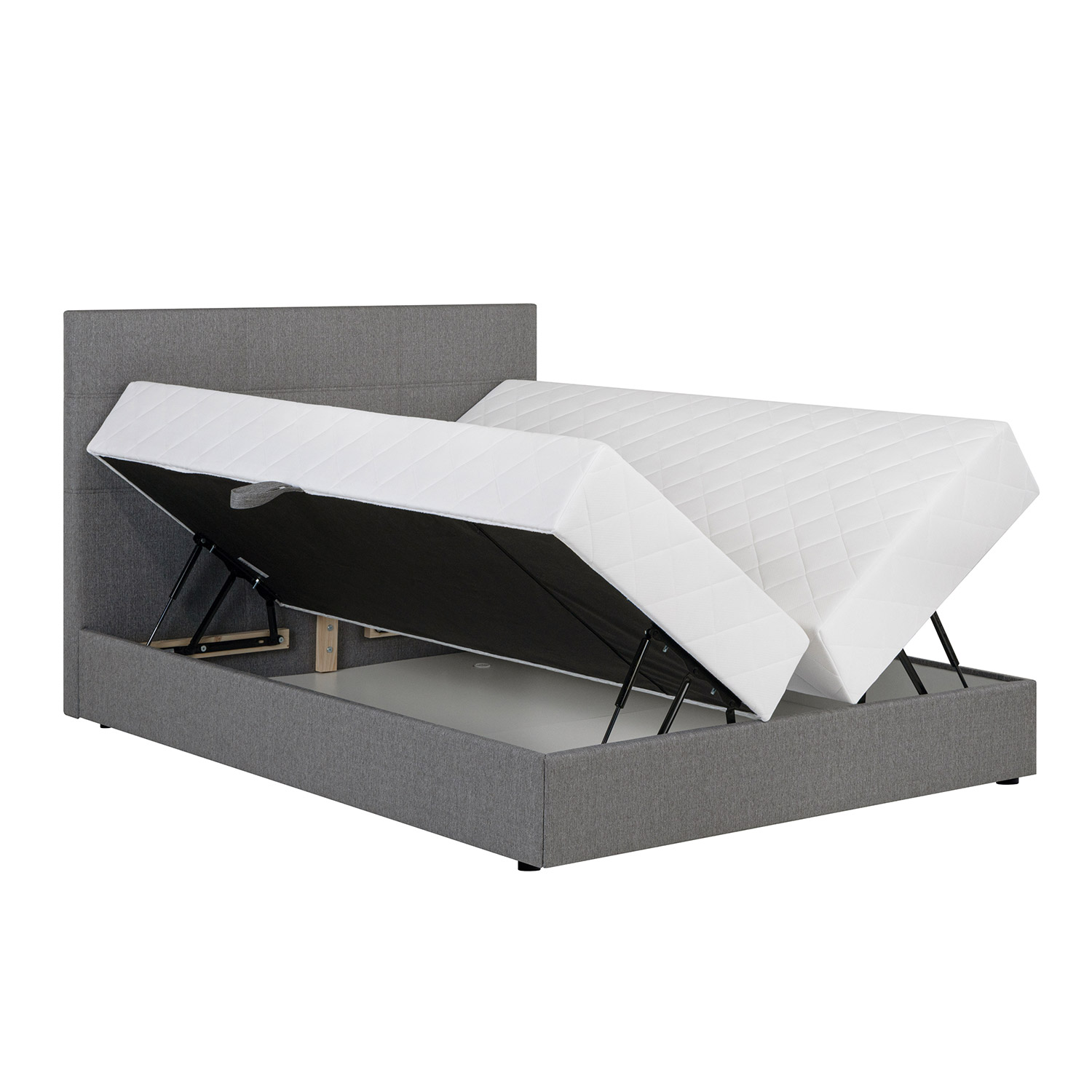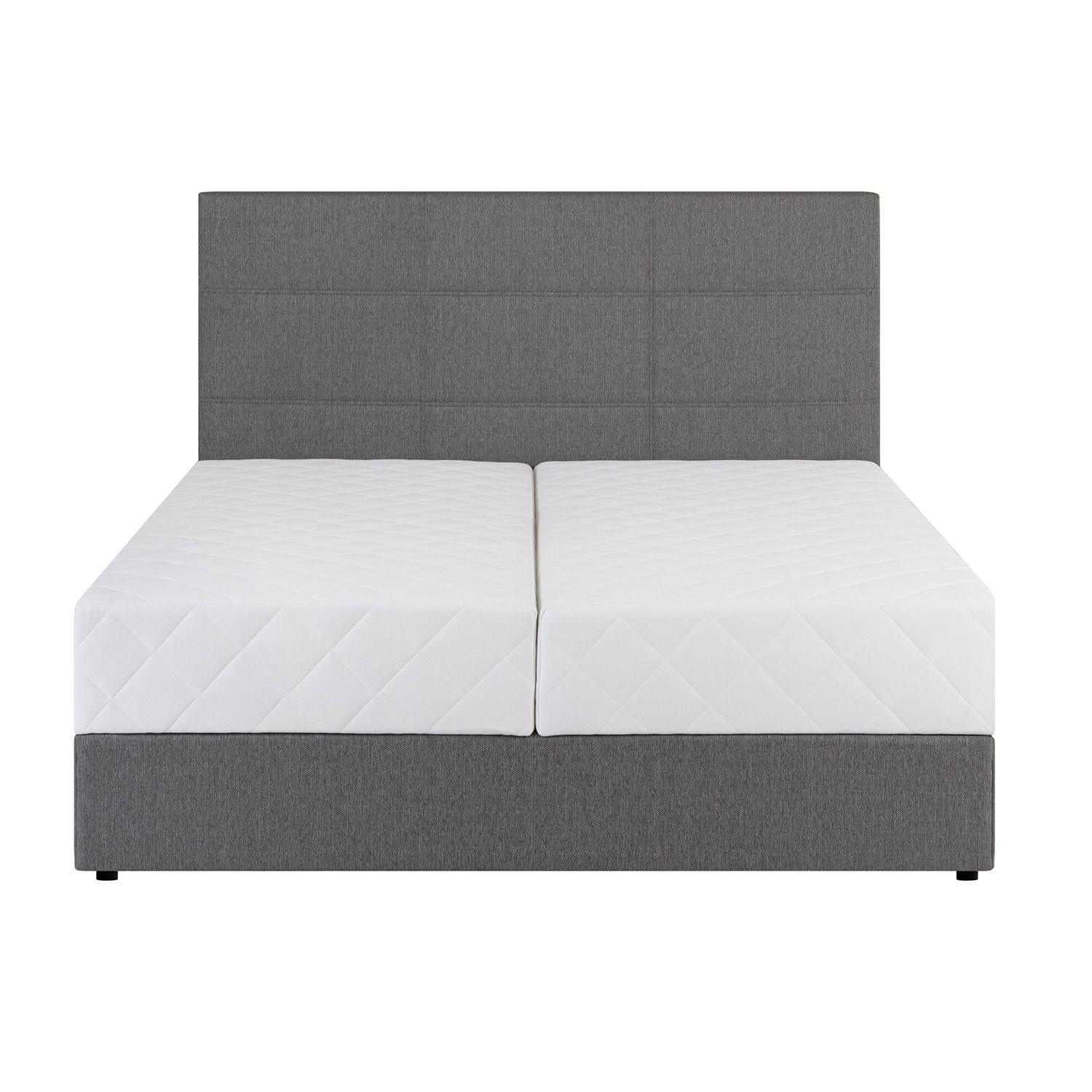 Kontinentinė lova LEIKO 160×200 cm, pilka. Lovoje yra kišeninis spyruoklinis čiužinys, 210 spyruoklių/m2. Spyruoklių aukštis 13 cm. Spyruoklės padengtos 2 cm storio porolono sluoksniu. Po lova yra didelė daiktadėžė, pagaminta iš medžio masyvo ir laminuotos medžio drožlių plokštės. Jos šonai padengti porolonu. Lovos rėmas aptrauktas audiniu. Į komplektą įeina lovos galvūgalis, kuris yra 3 cm platesnis už lovą. Lovos galvūgalio storis – 9 cm. Komplekte yra jungtys galvūgaliui prie lovos pritvirtinti. Lova turi keturias plastikines 2,5 cm aukščio kojeles. Kojos yra juodos spalvos. Gaminio matmenys 163x210xH114,5 cm. Gaminys pagamintas ES.