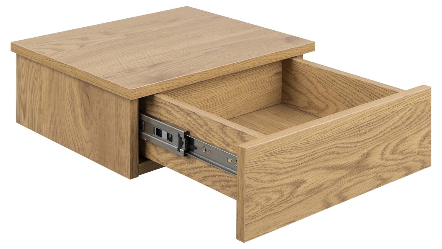 Ąžuolinė naktinė spintelė. Su praktinio laikymo skyriumi. Sklandžiai stumdomas stalčius. Integruota rankena, kad atrodytų švariai. Matmenys 37x32xH13 cm.