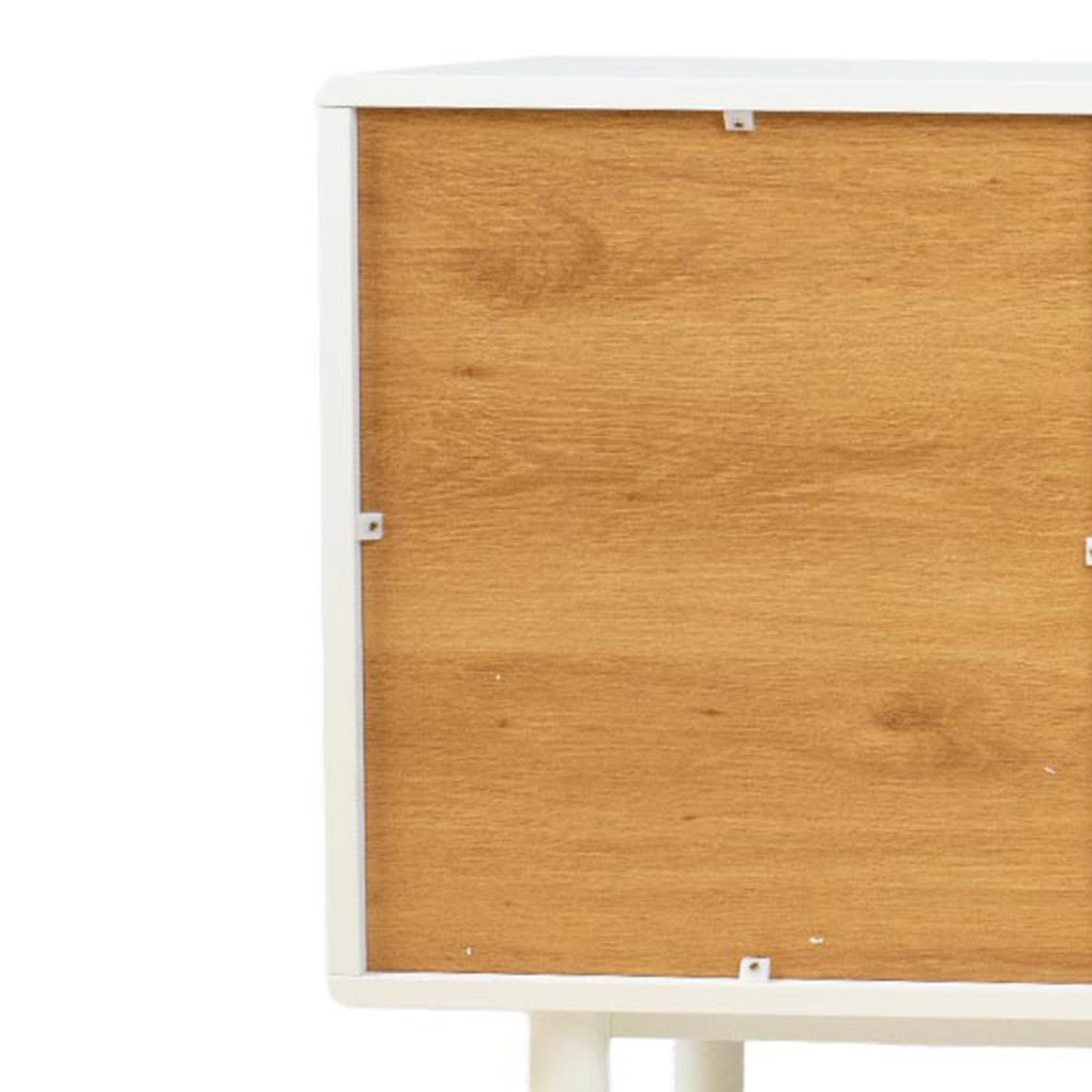 Naktinis staliukas IRIS su stalčiumi ir lentyna 48x40xH55cm, baltos spalvos. Naktinis staliukas pagamintas iš 18 mm MDF. Kojos ir pagrindo rėmas iš medžio masyvo. Spintelės apdaila – patvarūs poliuretaniniai dažai. Stalčius turi odinę rankenėlę. Atviras skyrius išklotas šviesaus medžio spalvos plokšte. Naktinis staliukas turi užapvalintus išorinius kraštus.