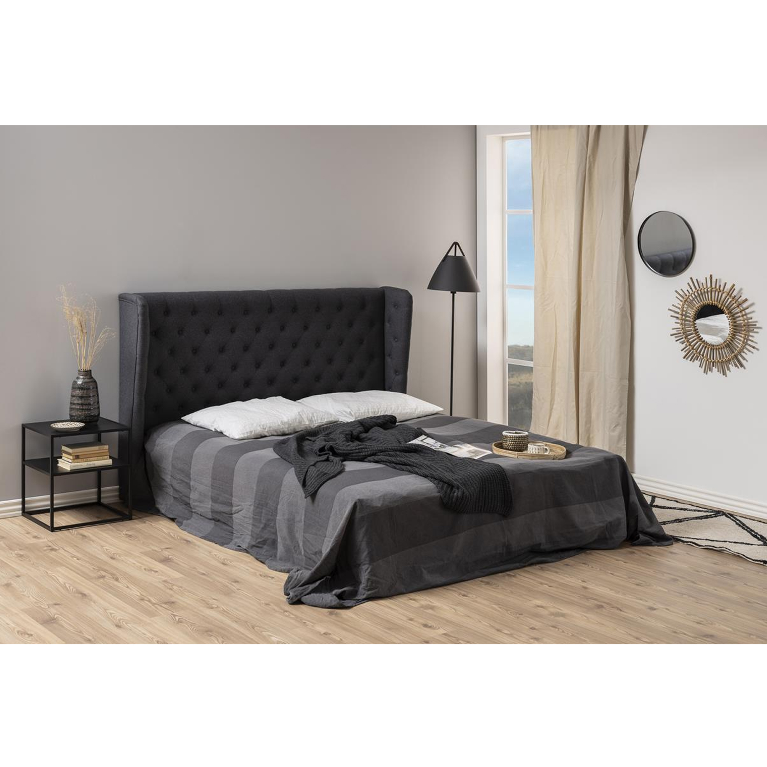 Dėl švarių linijų ir milteliniu būdu dengtos apdailos ši naktinė spintelė miegamajame įgauna pramoninį įvaizdį. Lentynoje galite laikyti knygas ir žurnalus, o viršų papuošti dekoratyviniais elementais. Medžiaga: matinis juodas milteliniu būdu dengtas plienas. Matmenys: 45x40xH50,5 cm.
