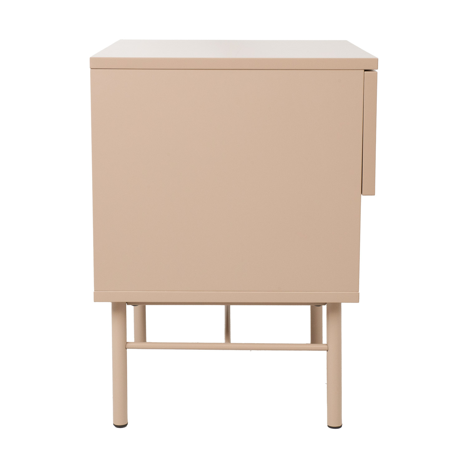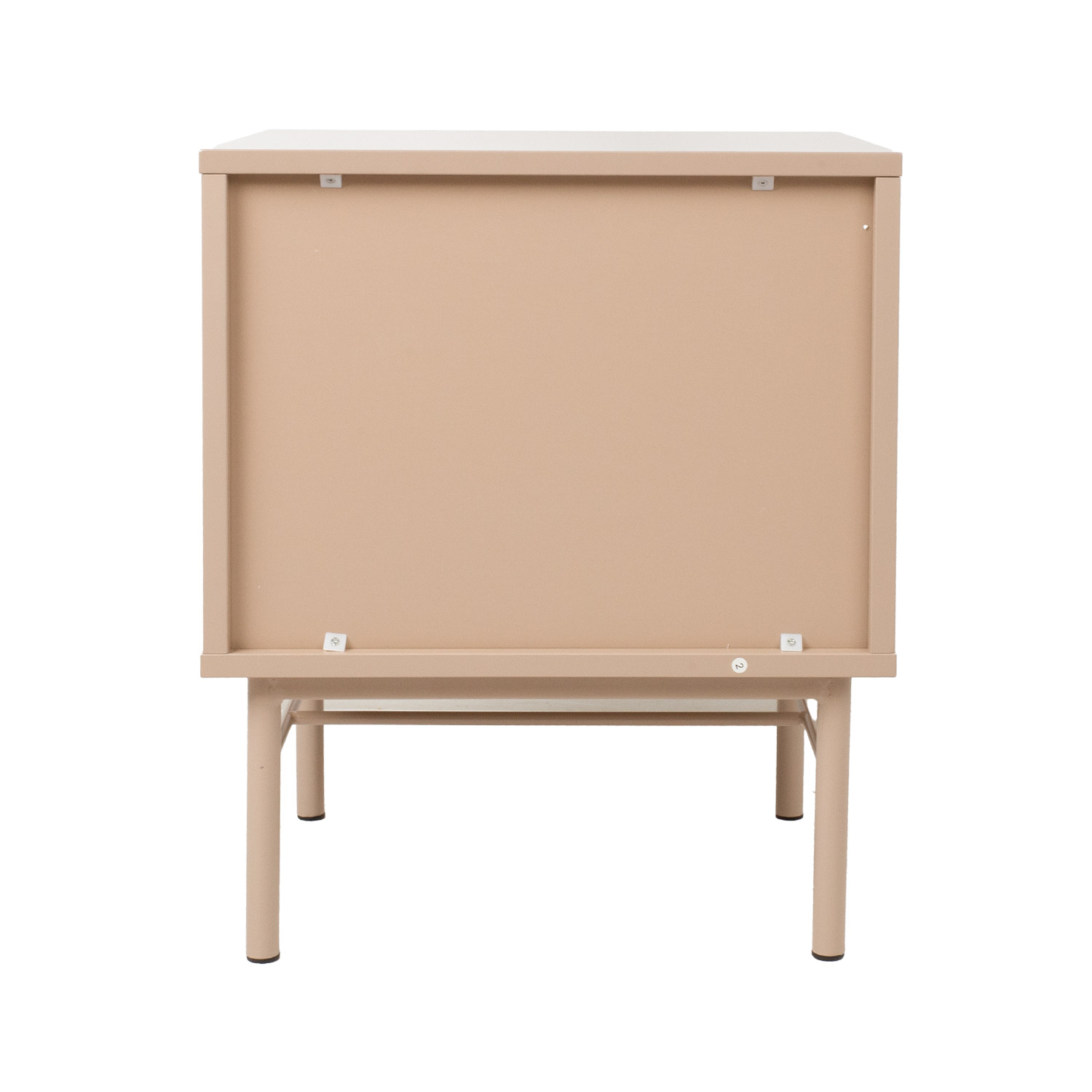Naktinis staliukas SEQUENCE su stalčiumi ir atvira lentyna 45x40xH55cm, kapučino spalvos. Spintelės korpusas pagamintas iš MDF. Dryžuoti stalčių frontai su reljefine apdaila suteikia spintai išskirtinę ir madingą išvaizdą. Stalčiai stumdomi ant metalinių spyruoklių. Naktinės spintelės apdaila padengta patvariais poliuretano dažais. Metalinis pagrindo rėmas ir kojelės dažytos milteliniu būdu.