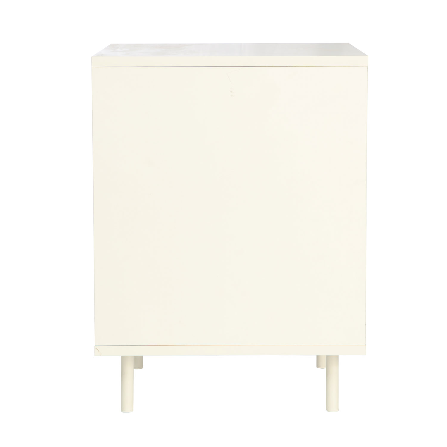The legs of the cabinet are made of metal and finished with a white powder coating.