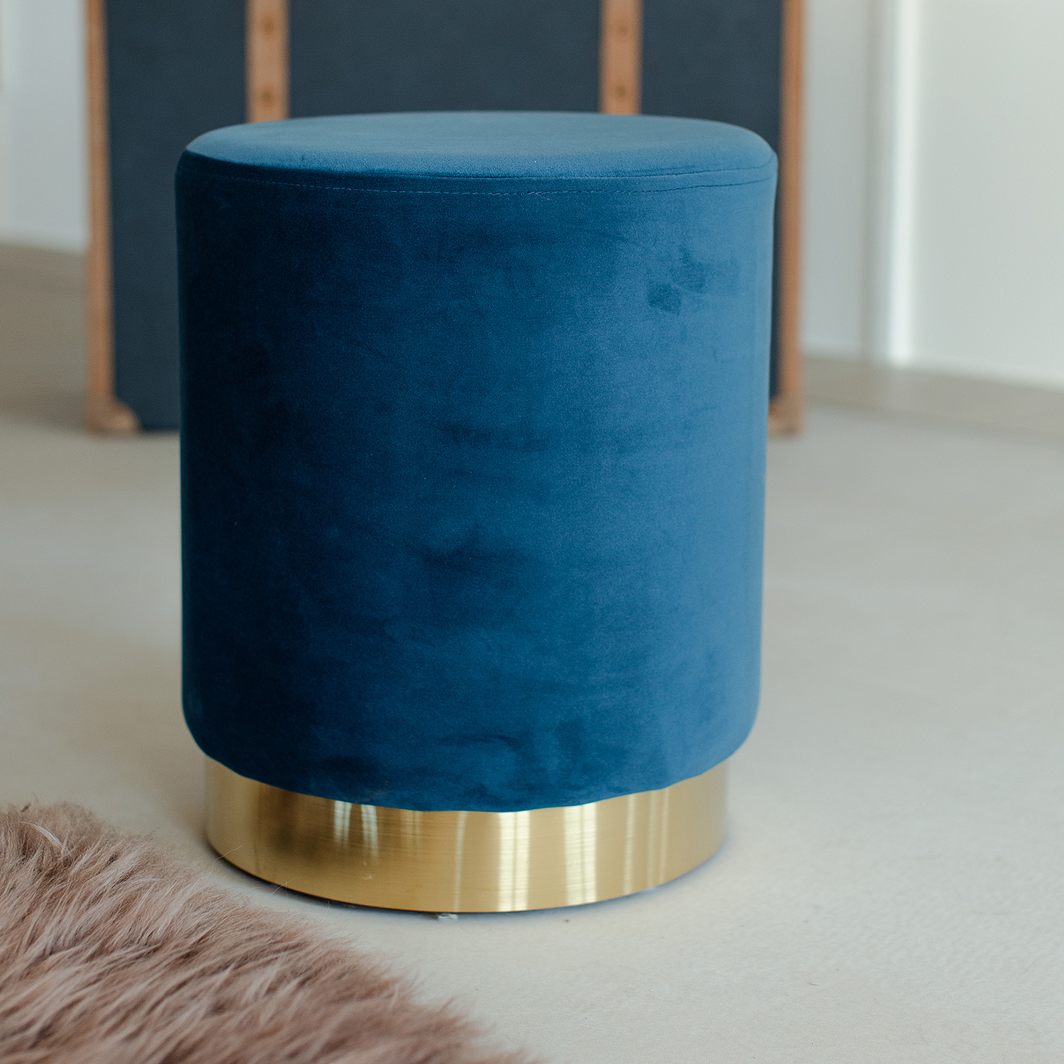 Tuba LA PERLA jūros mėlyna. Tūba aptraukta aksominiu audiniu, 100 % poliesteris. Tūba turi poliesterio paminkštinimą. Apatinėje dalyje yra auksinis metalinis kraštas, 6 cm aukščio. Tūba turi medinį rėmą. Ribinis svoris 90 kg. Tūbos matmenys D35xH42 cm.