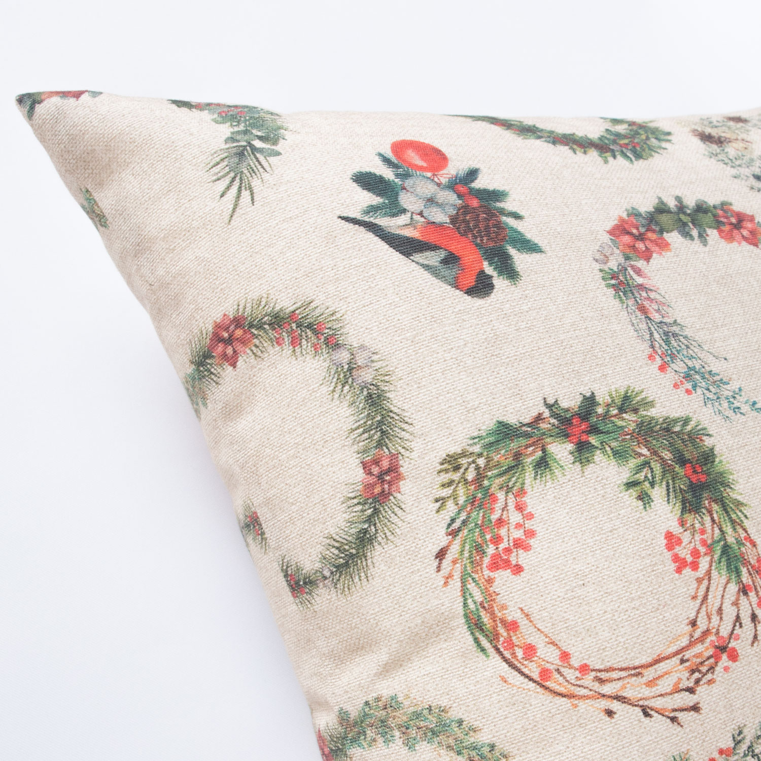 Pagalvėlė CHRISTMAS 45x45cm, Kalėdų žiedai. Medžiaga. Medvilnė: 50% medvilnė, 50% poliesteris, 50% poliesteris, 50% medvilnė, 50% medvilnė, 50% medvilnė, 50% medvilnė.