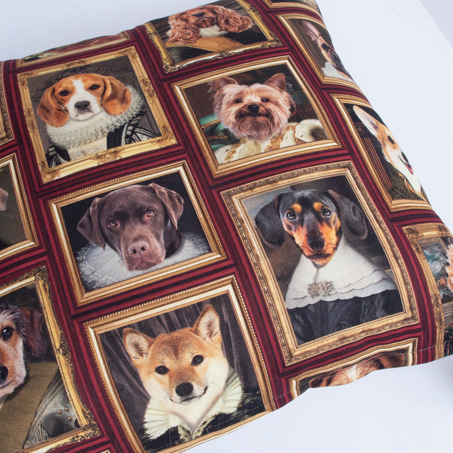 Pagalvėlė HOLLY 45x45cm, su užraktu, šunys rėmelyje, 100% medvilnė, audinys 438. PRIEŽIŪRA: čiužinį galima skalbti skalbimo mašinoje 30 laipsnių temperatūroje.