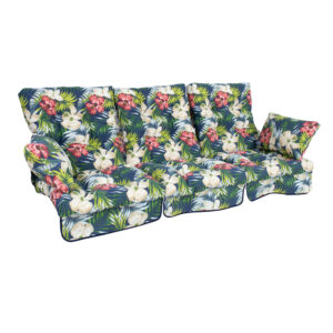 Ripple kėdės pagalvėlė COCO lengvas gėlių raštas. Kėdė 95/65×75 cm, storis 15 cm, galvos pagalvėlė 55×24 cm, storis 12 cm, 100 % poliesteris, audinys 471. Tinka modeliams Tempio, Coco, Droplet, Sedico.