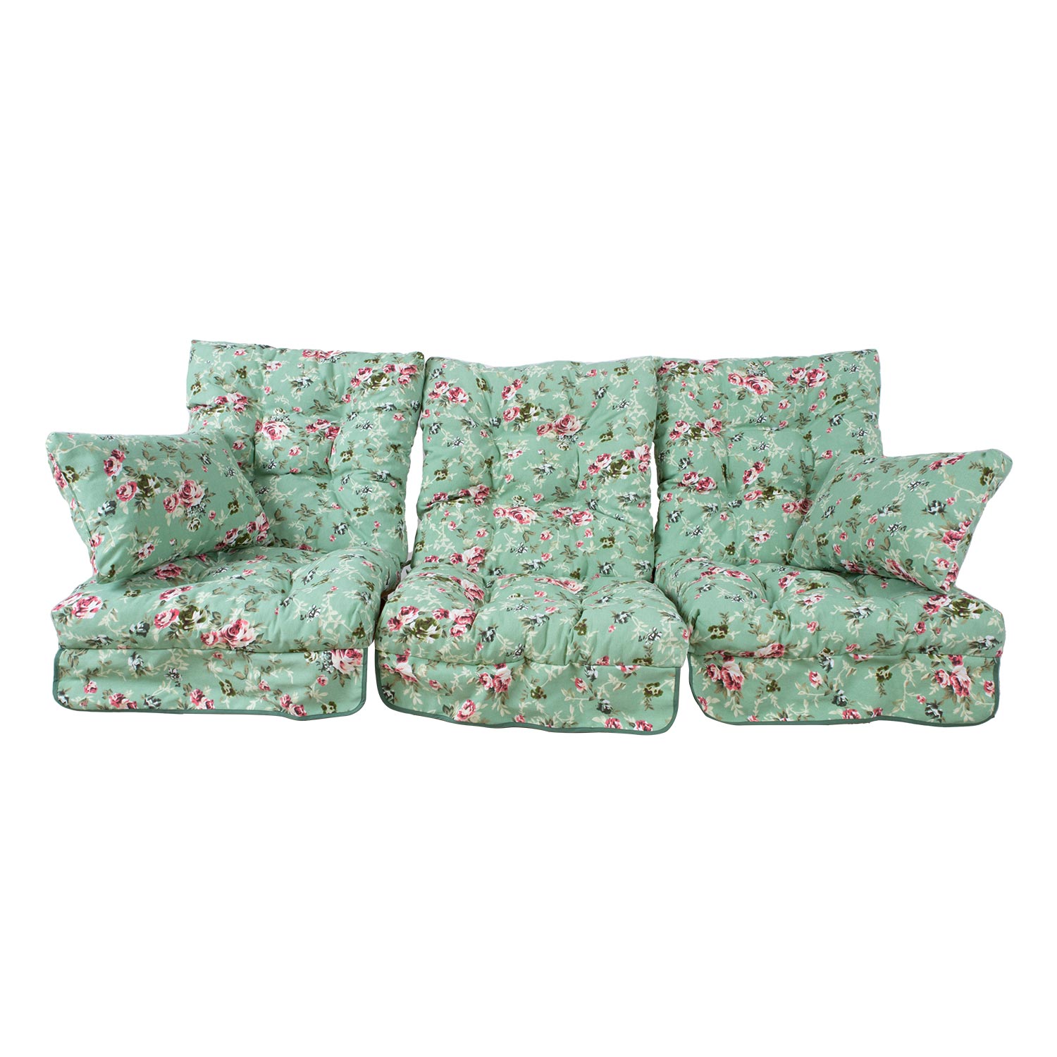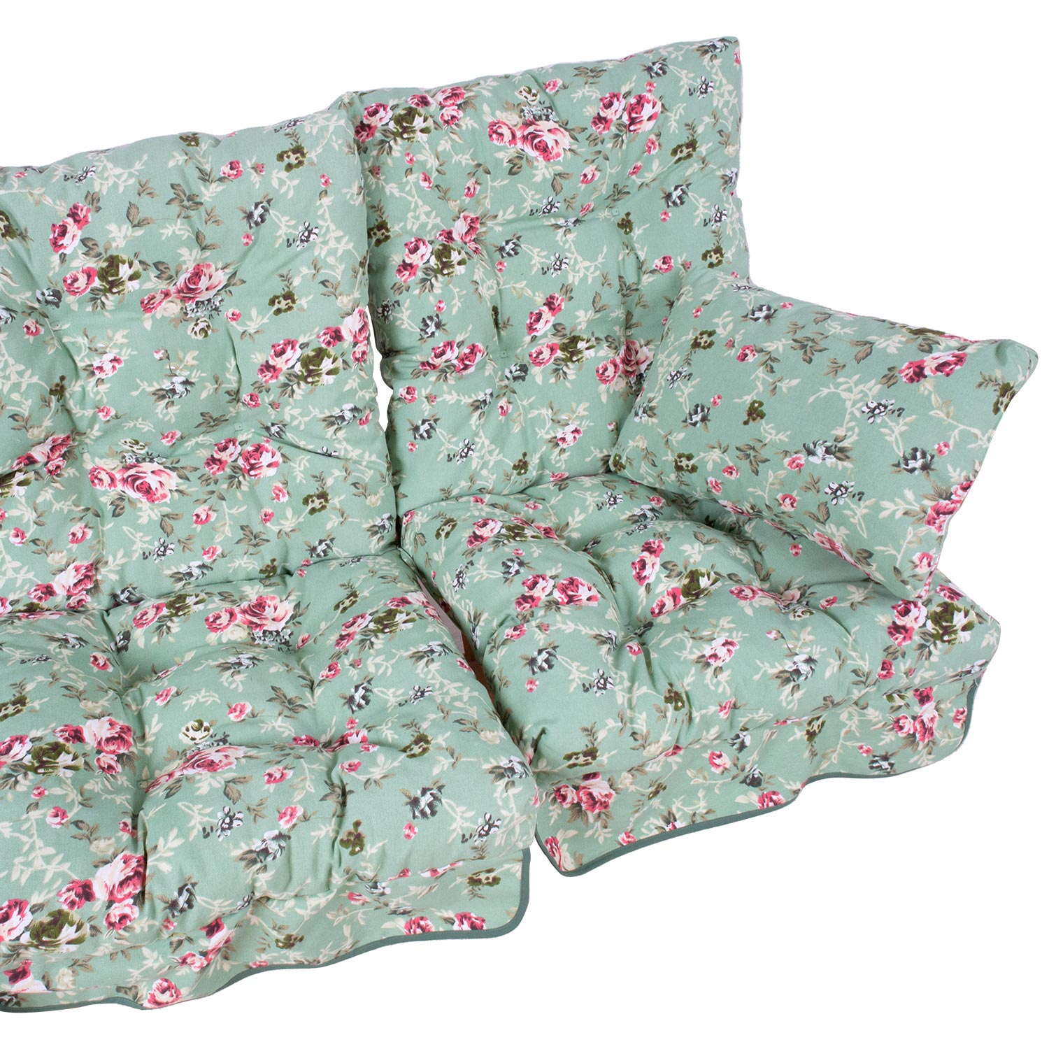 Sūpynės pagalvėlės ROMA roses. Tinka supynėms ROMA, ROMA LUX, DUKE, SIMONI, SIMONI LUX, PRAGA, ATENE. 20 % poliesteris, 80 % medvilnė, audinys 337. Vienos pagalvėlės matmenys: plotis 56 cm, ilgis 108 cm, storis 10 cm. 3 pagalvių komplektas.
