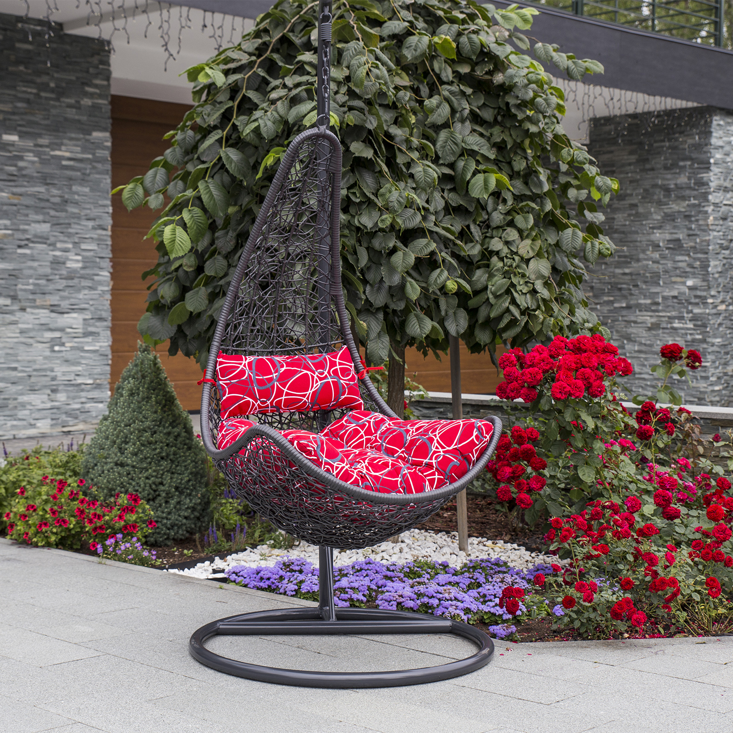 Pakabinama kėdė COCO tamsiai pilkos spalvos. Puiki vieta atsipalaiduoti. Pridedamos patogios ir minkštos pagalvėlės. Raudono rašto pagalvėlės aptrauktos poliesterio audiniu ir užpildytos poliesterio putplasčiu. Plieninis supamojo krėslo rėmas aptrauktas tamsiai pilku plastikiniu apvadu. Plieninio rėmo matmenys D105xH200 cm, o vamzdžio skersmuo – 42 mm. Hamakavimo kėdės matmenys yra 120x105xH195 cm, o keliamoji galia – 100 kg. PRIEŽIŪRA: pakabinamo krėslo negalima ilgai laikyti saulėje ar lietuje, nes tai sutrumpins gaminio tarnavimo laiką. Gaminį reikėtų laikyti sausoje ir pavėsingoje vietoje. ĮSPĖJIMAS: gaminys nėra skirtas naudoti esant stipriam vėjui ir lietui.