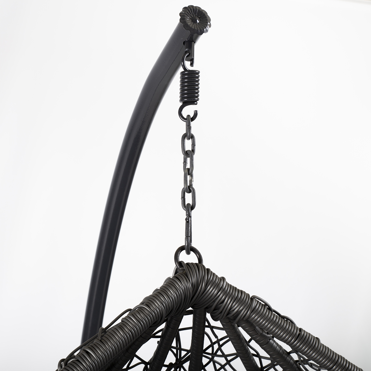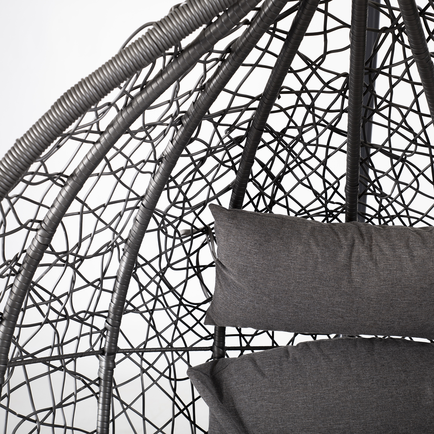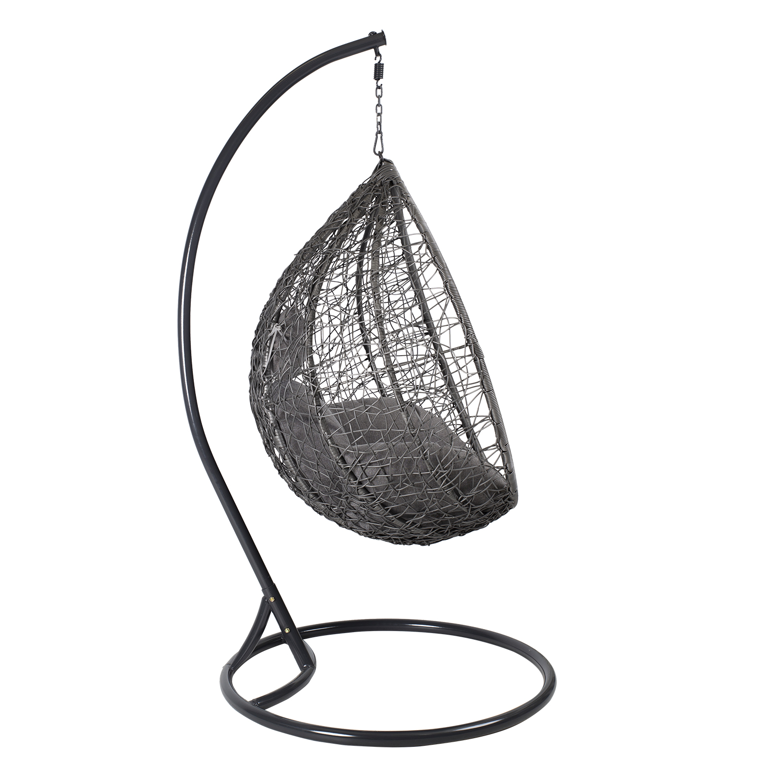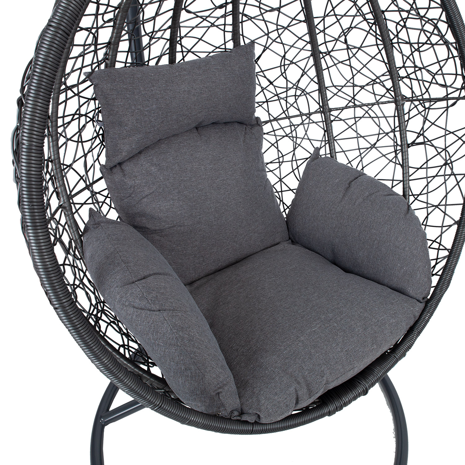 Pakabinama kėdė DROPLET tamsiai pilka. Puiki vieta atsipalaiduoti. Pridedamos patogios pagalvėlės. Pilkos spalvos pagalvėlės aptrauktos poliesterio audiniu ir užpildytos poliesterio putplasčiu. Supamojo krėslo sėdynės matmenys 105x70x120 cm. Plieninis kėdės rėmas aptrauktas tamsiai pilku plastikiniu apvadu. Plieninis pagrindas dažytas milteliniu būdu tamsiai pilka spalva. Pagrindo matmenys yra D105xH200 cm, o vamzdžio skersmuo – 42 mm. Supamojo krėslo matmenys yra 120x120xH200 cm, o keliamoji galia – 100 kg. PRIEŽIŪRA: pakabinamo krėslo negalima palikti saulėje ar lietuje ilgesnį laiką, nes tai sutrumpins gaminio tarnavimo laiką. Gaminį reikėtų laikyti sausoje ir pavėsingoje vietoje. ĮSPĖJIMAS: gaminys nėra skirtas naudoti esant stipriam vėjui ir lietui.