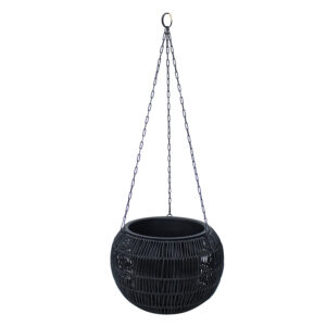 Lileamp WICKER D32xH22cm, su plyšiais spalvos. Metalinis vazonas karkasas padengtas plastikiniu pynimu. Vidinio plastikinio maišelio matmenys D21xH20cm. Vidinis vazonas neturi skylės. Juodos spalvos metalinės kabančios grandinėlės 57cm.