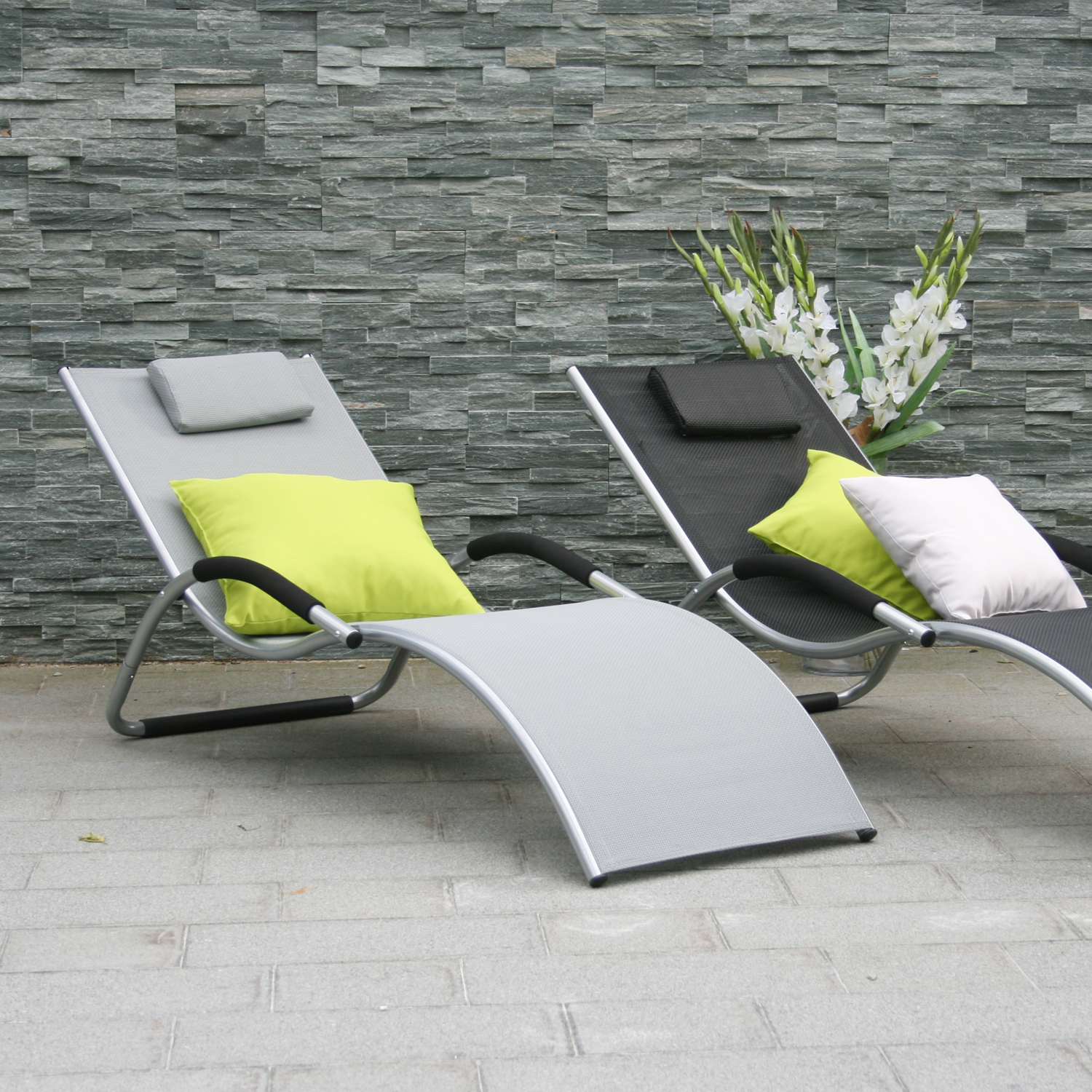 Lamami kėdė BRIGO 62x180xH26/66cm, pilka. Tekstileninė poilsio kėdės sėdynė gerai praleidžia orą, greitai džiūsta ir yra lengvai valoma. Kėdės rėmas pagamintas aliuminio ir padengtas pilka milteline danga. Porankiai turi juodus poliuretano užvalkalus. Sėdynės plotis – 54 cm, sėdynės aukštis žemiausiame taške – 26 cm, porankių aukštis nuo žemės – 42 cm. poliruoto poliesterio apdaila. Ribinis svoris 120 kg. Kėdės gali būti sukraunamos viena ant kitos. Gaminys labai patvarus kintamomis oro sąlygomis, jį lengva prižiūrėti. PRIEŽIŪRA: pasibaigus vasaros sezonui rekomenduojame baldus laikyti patalpoje. Plaktuko užgrobimo atveju tealdus reikėtų laikyti sausoje ir gerai vėdinamoje patalpoje.