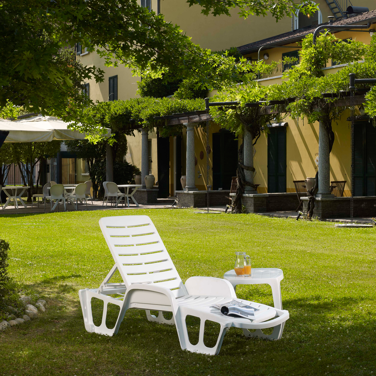 Lamami kėdė FISSO 71x192xH45cm, baltas plastikas. Reguliuojamas poilsio kėdės atlošas gali būti horizontalioje padėtyje arba galite pasirinkti vieną iš keturių skirtingų padėčių. Kėdės gali būti sukraunamos viena ant kitos. Ribinis svoris 100 kg. Medžiaga: polipropilenas (PP). PRIEŽIŪRA: plastikiniai baldai nereikalauja specialios priežiūros. Paviršių reikėtų reguliariai valyti vandeniu ir praskiestu ploviklio tirpalu. Nenaudokite baliklių ar abrazyvinių valiklių. PRIEŽIŪRA: pasibaigus vasaros sezonui rekomenduojame sodo baldus laikyti patalpoje. Pasibaigus vasaros sezonui, rekomenduojama baldus palikti sandėlyje. Sandėliavimui naudokite sausą ir gerai vėdinamą patalpą.