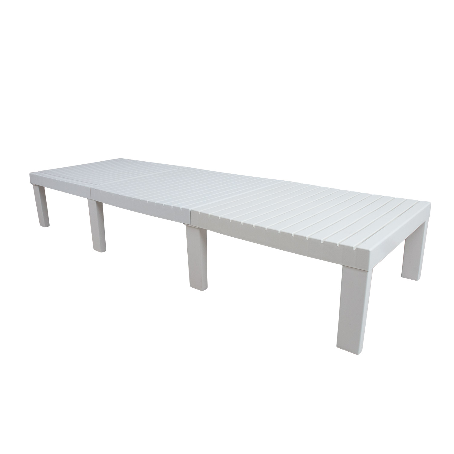 Lamami kėdė HAITI 65x195xH32/78cm, baltas plastikas. Reguliuojamas kėdės atlošas gali būti horizontalioje padėtyje arba galite pasirinkti vieną iš keturių skirtingų padėčių. Ribinis svoris 120 kg. Medžiaga: polipropilenas (PP). PRIEŽIŪRA: plastikiniai baldai nereikalauja specialios priežiūros. Reguliariai valykite paviršius vandeniu ir drungnu ploviklio tirpalu. Nenaudokite baliklių ar abrazyvinių valiklių. PRIEŽIŪRA: pasibaigus vasaros sezonui rekomenduojame sodo baldus laikyti patalpoje. Pasibaigus vasaros sezonui, rekomenduojama baldus palikti sandėlyje. Sandėliavimui naudokite sausą ir gerai vėdinamą patalpą.