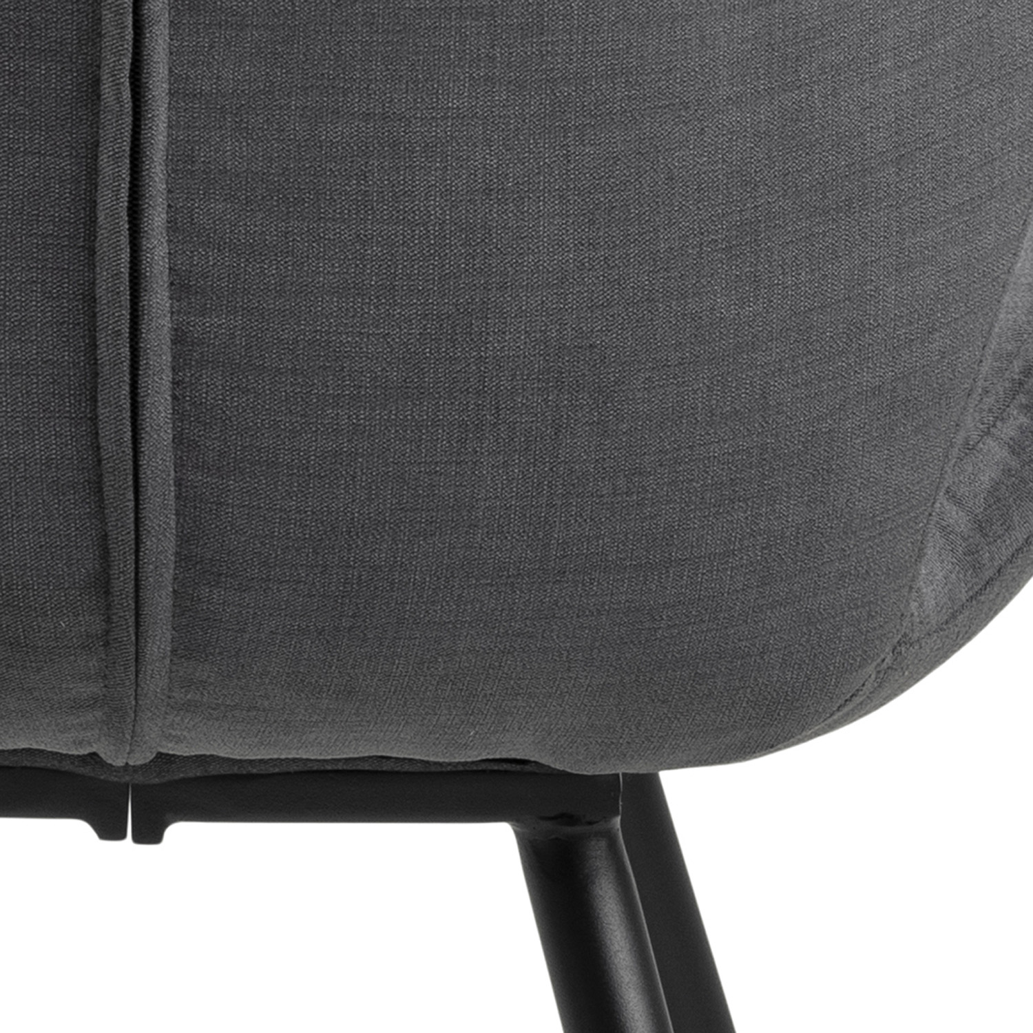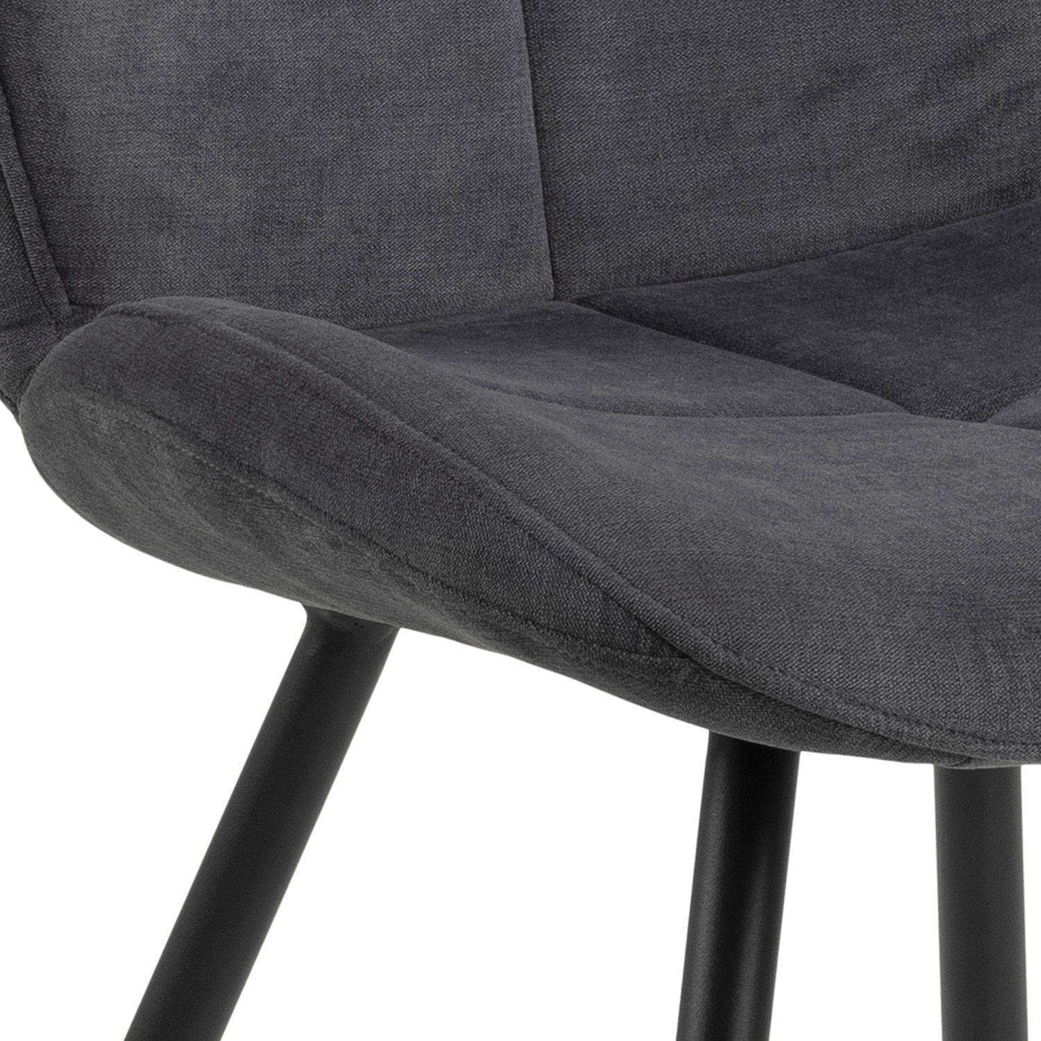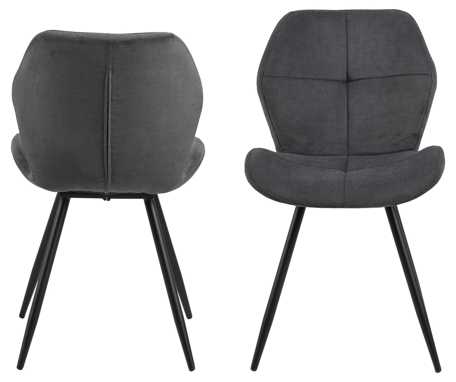 Stilinga valgomojo kėdė. Išlenkta forma sukuria gražų siluetą, o minkšta sėdynė ir atlošas užtikrina komfortą. Akį traukianti dygsniavimo detalė suteikia asmeniškumo. Kojos: matinis juodas milteliniu būdu dengtas metalas. Matmenys 48x55xH82,5 cm. PRIEŽIŪRA: Priežiūra apsiriboja dulkių siurbliu ir dėmių šalinimu. Reikėtų atsargiai šalinti dėmes. Pirmiausia išbandykite dėmių šalinimo priemones mažiau matomoje vietoje ir atitinkamai elkitės. Niekada nenaudokite tirpiklių. Nestatykite baldų tiesioginiuose saulės spinduliuose. Pagrindas: kasdieniam valymui naudokite šluostę, sausai išskalautą muiluotu vandeniu. Paviršių nušluostykite sausai, kad nerūdytų. Netrinkite paviršiaus kietais daiktais.