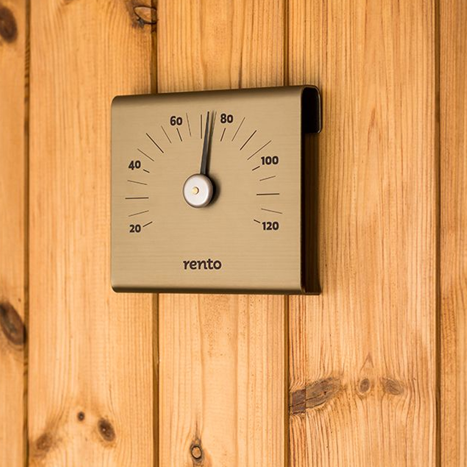 Pirties termometras RENTO CHAMPAGNE, 15 × 14 × 3 cm. Spalvotas anoduotas aliuminis.