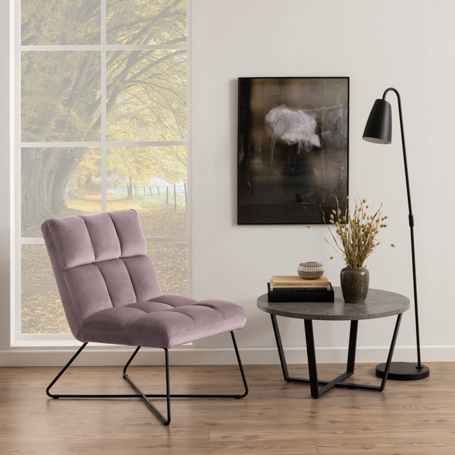 Kėdė ALBA vanarose. Fotelis aptrauktas aksominiu audiniu su kvadratinėmis siūlėmis ir užtrauktuku, spalva: VIC aksominis audinys vanarose 18. Kojos pagamintos iš matinio juodo metalo. Gaminio matmenys: 62x86xH90 cm.