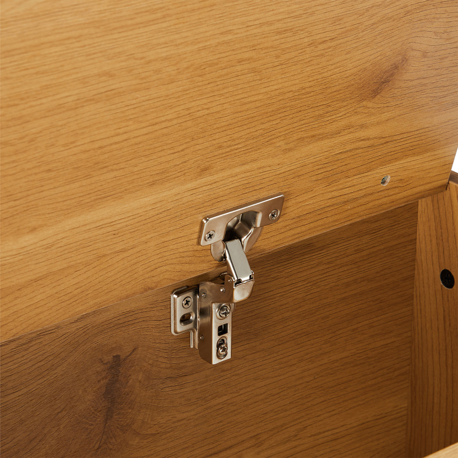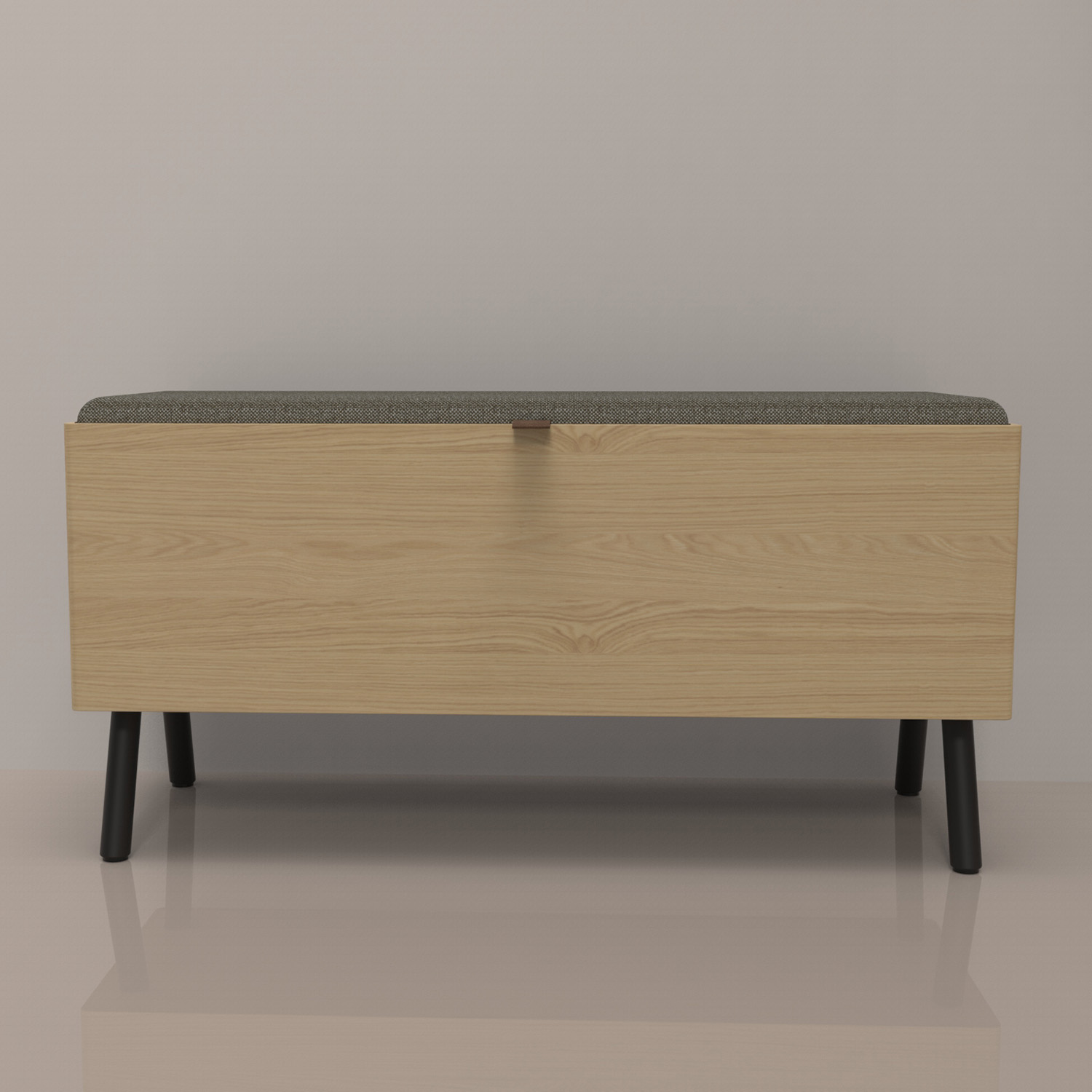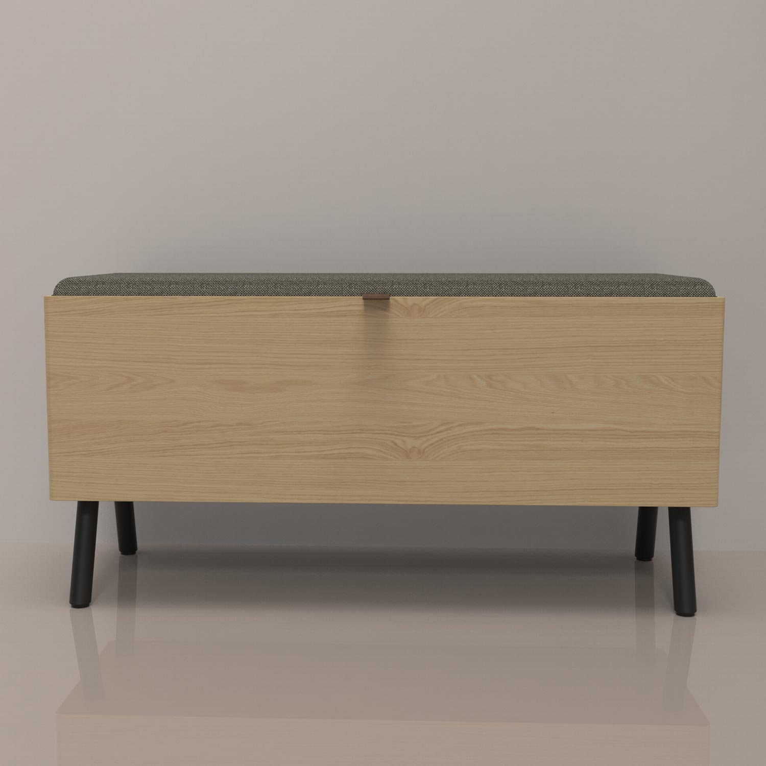 Valgomojo suolas AALBORG 90x32xH46cm, melamino su ąžuoliniu stalviršiu. Suoliukas pagamintas iš melamino viršaus. Suolo viduje yra didelė daiktadėžė. Sėdynė lengvai apmušta ir aptraukta poliesterio audiniu. Suolo metalinės kojos padengtos juoda milteline danga.