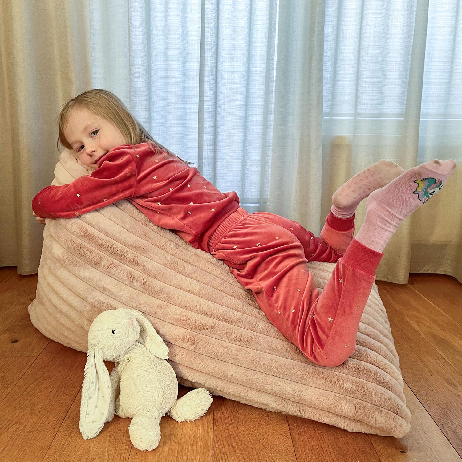 Krepšys kėdė MINI 100x70x15/70cm, rožinės spalvos. 100% poliesteris, audinys 372. Krepšys-kėdė užpildytas specialiomis granulėmis, kurios prisitaiko prie sėdinčiojo kūno formos ir suteikia patogią atramą nugarai. Granulės saugiai laikomos vidinėje kišenėje ir prireikus jas galima lengvai papildyti. Krepšys-kėdė puikiai tinka bet kokiam interjerui, namams ar biurui, svetainei ar vaikų kambariui.