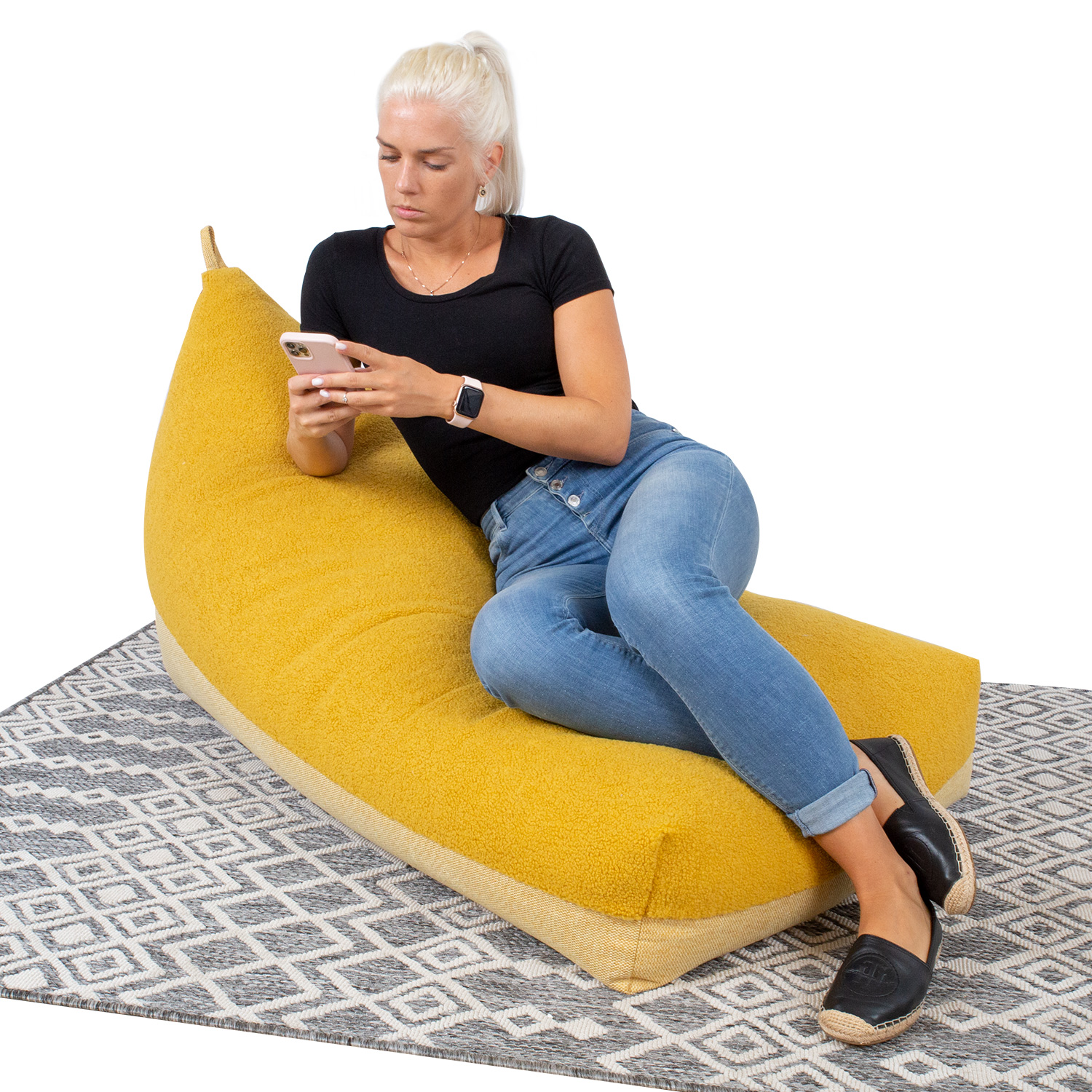 Krepšinis kėdė LAMB BAG, 130x80x20/70 cm, geltonos spalvos, 100 % poliesteris, audinys 325/322. Krepšinis kėdė užpildytas specialiomis granulėmis, kurios prisitaiko prie sėdinčiojo kūno formos ir suteikia patogią atramą nugarai. Granulės saugiai laikomos vidinėje kišenėje ir prireikus jas galima lengvai papildyti. Krepšinio kėdė puikiai tinka bet kokiam interjerui, namams ar biurui, svetainei ar vaikų kambariui.