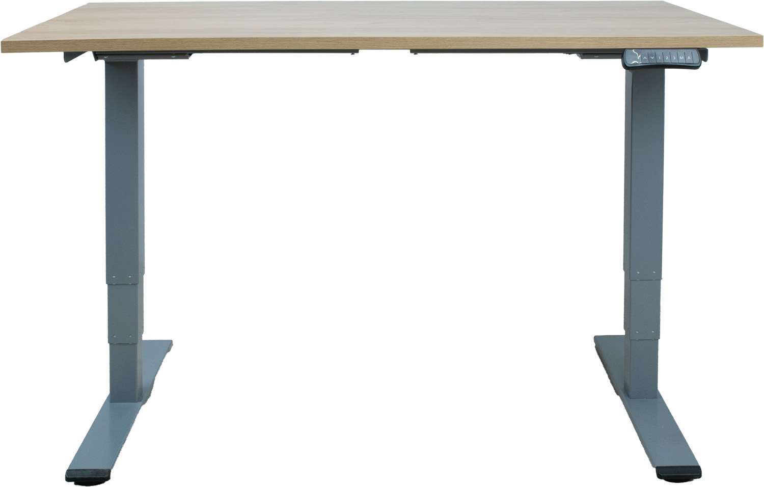 Rašomasis stalas ERGO OPTIMAL su 2 varikliais 140x70x62-127 cm, hikorio/ sidabro pilka