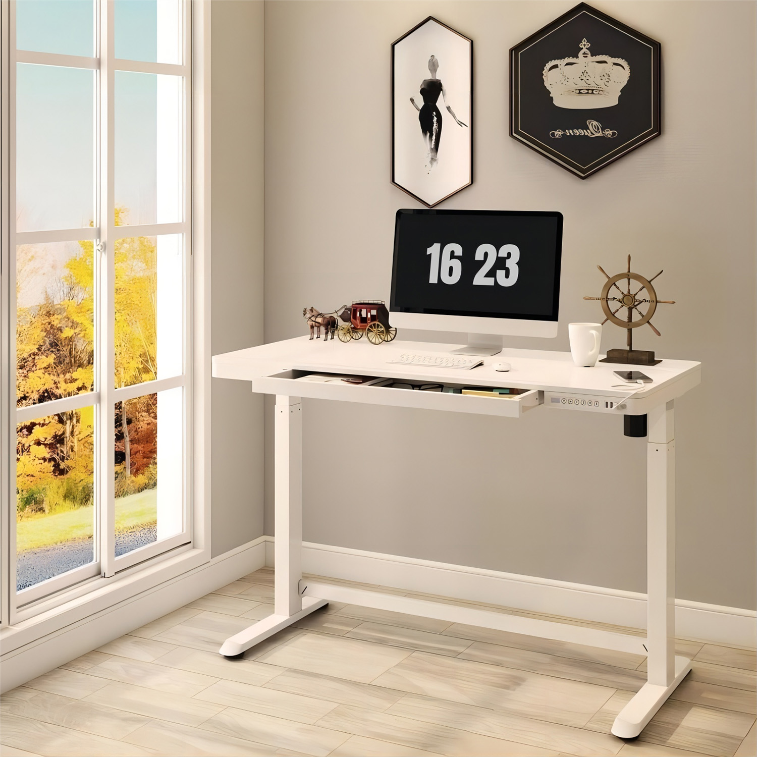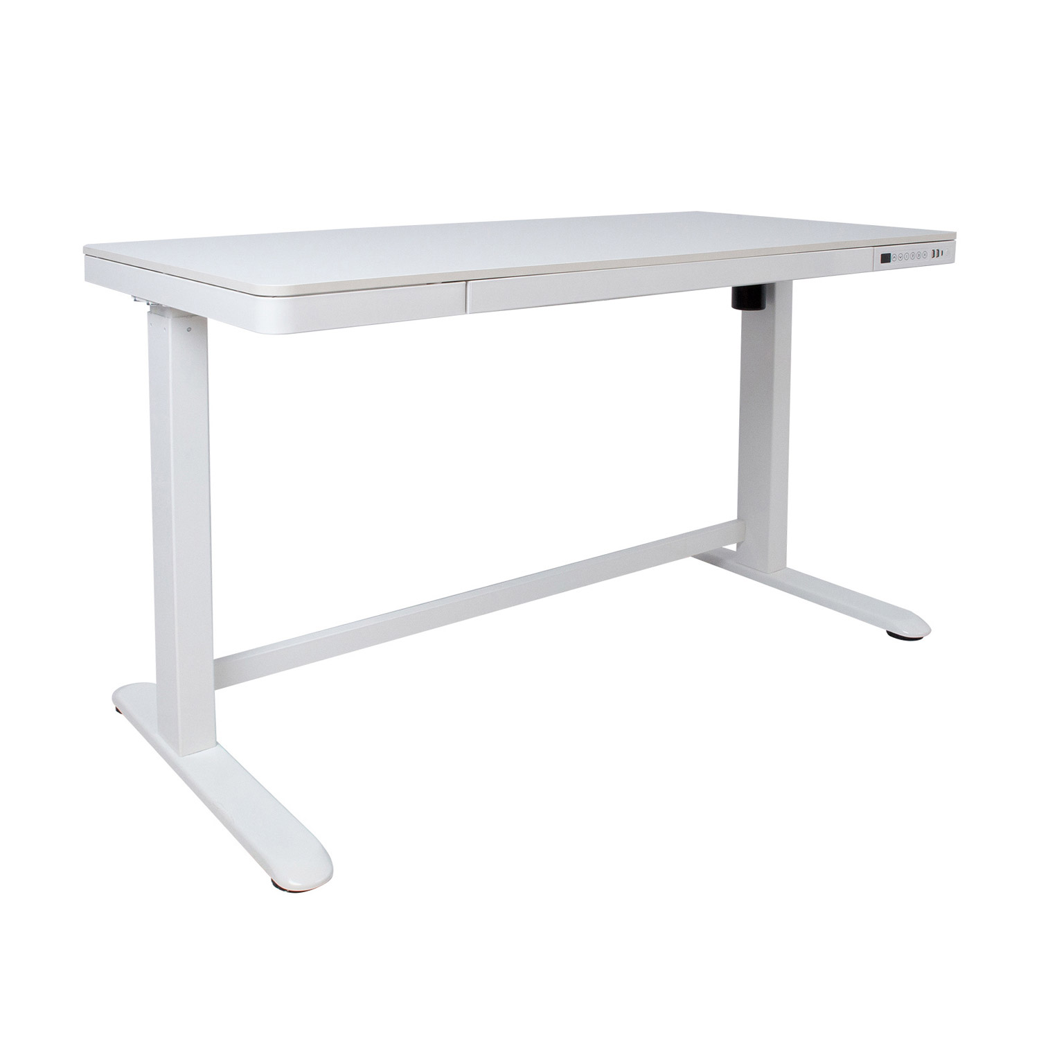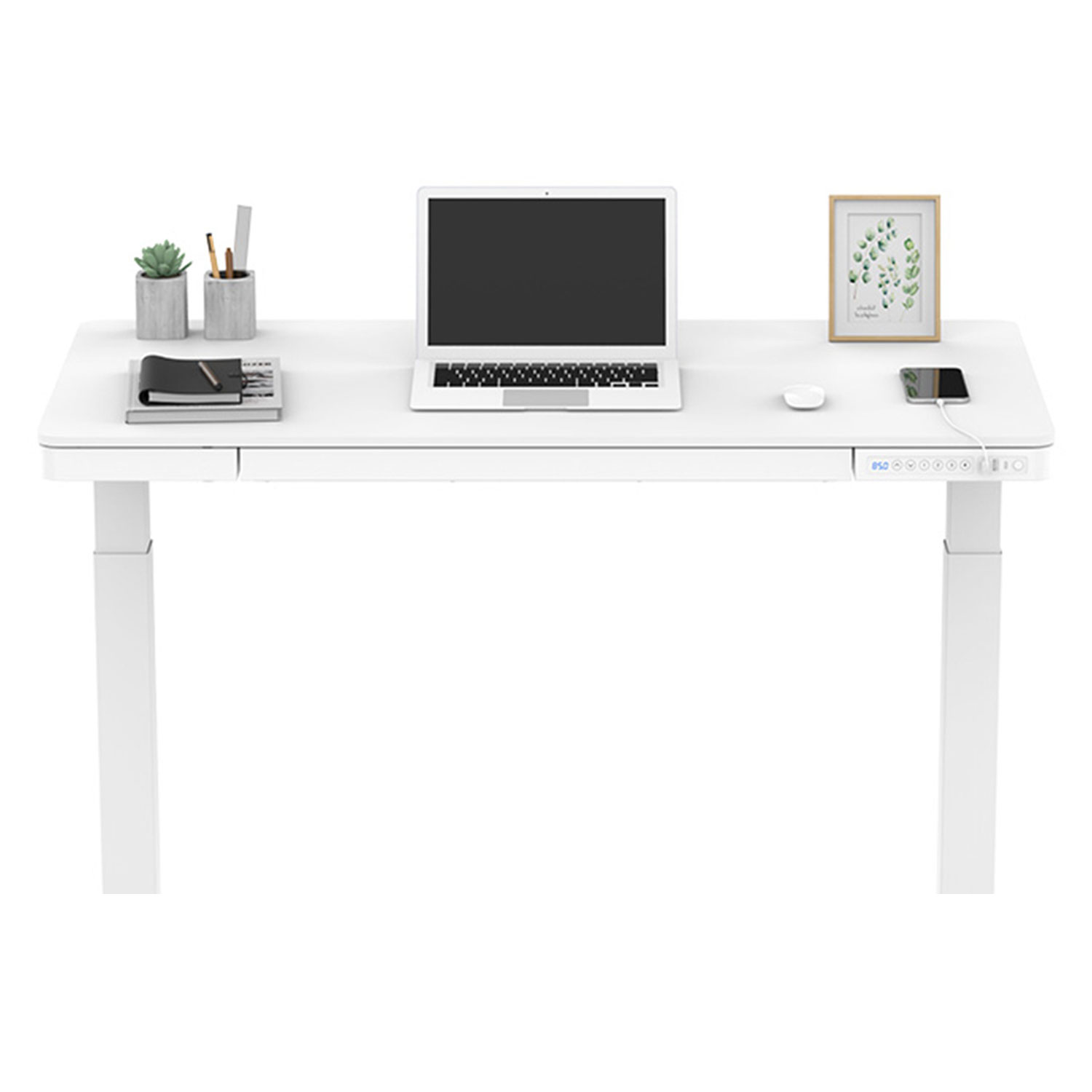 Rašomasis stalas ERGO 1 variklio 120x60xH72-121cm, baltos spalvos. Reguliuojamo aukščio rašomasis stalas – protingas pasirinkimas visai šeimai! Pasirūpinkite, kad jūsų ar jūsų vaikų darbo aplinka būtų patogi, ir išlikite sveiki! Vienas elektros variklis ir dvifazė kėlimo sistema užtikrina greitą, sklandų ir tylų (<50 dB) judėjimą. Kėlimo greitis 25 mm/s. Stalo aukštį galima reguliuoti nuo 72 iki 121 cm. Valdymo pulto atmintyje išsaugomos 4 padėtys. Didžiausia apkrovos keliamoji galia esant visam greičiui 50 kg. Įvesties įtampa: 100 V-240 V. Stalas turi apsauginį užraktą, 3 USB įkrovimo lizdus ir didelį skyrių. 120×60 cm balto melamino stalviršis. Dvigubo kvadrato formos plieninių vamzdžių konstrukcija užtikrina stalo kojos stabilumą net aukščiausioje padėtyje. Metalinės dalys padengtos baltos spalvos milteliniu būdu. Stalas surinktas ir supakuotas taip, kad jį būtų galima greitai ir lengvai sumontuoti ir nereikėtų jokių įrankių.