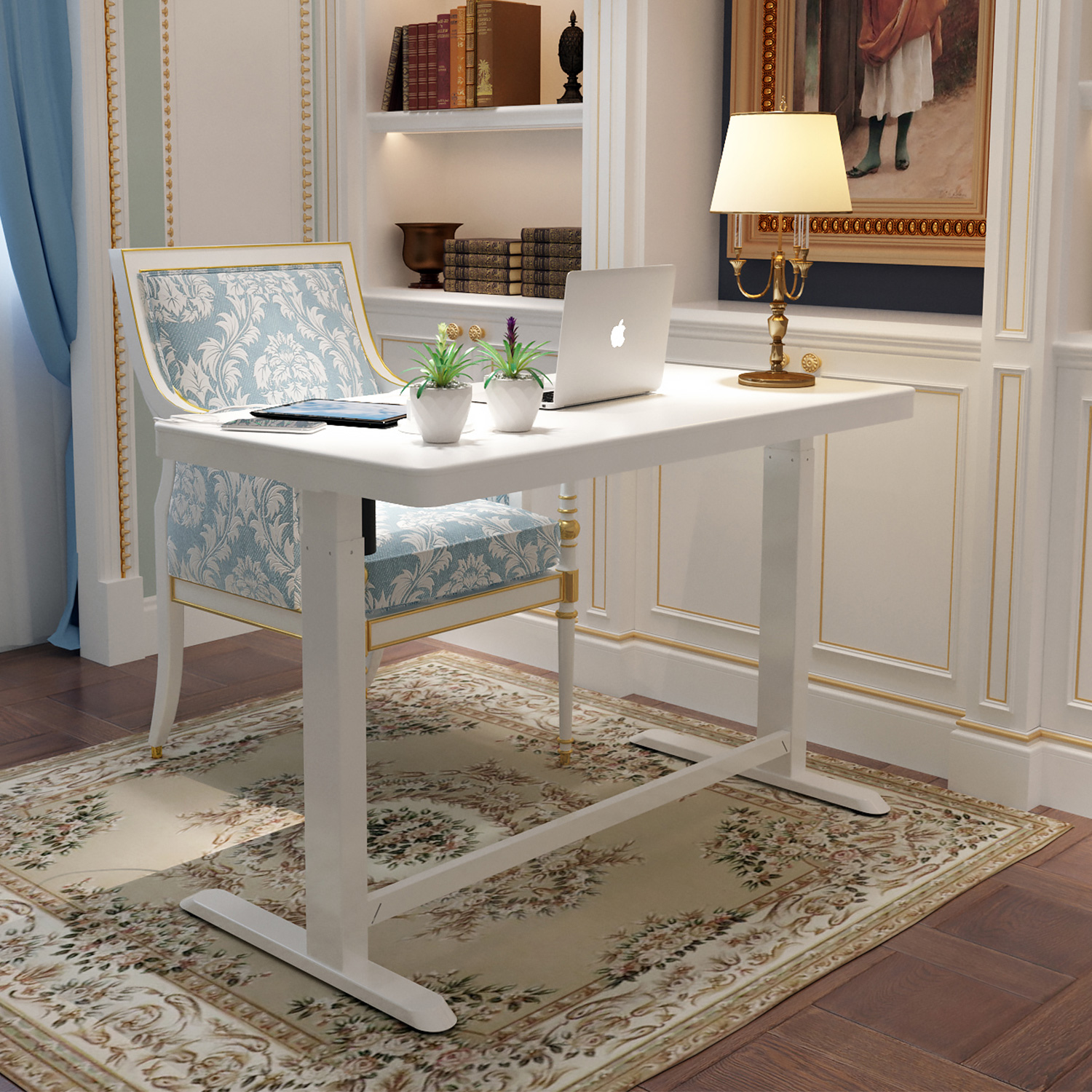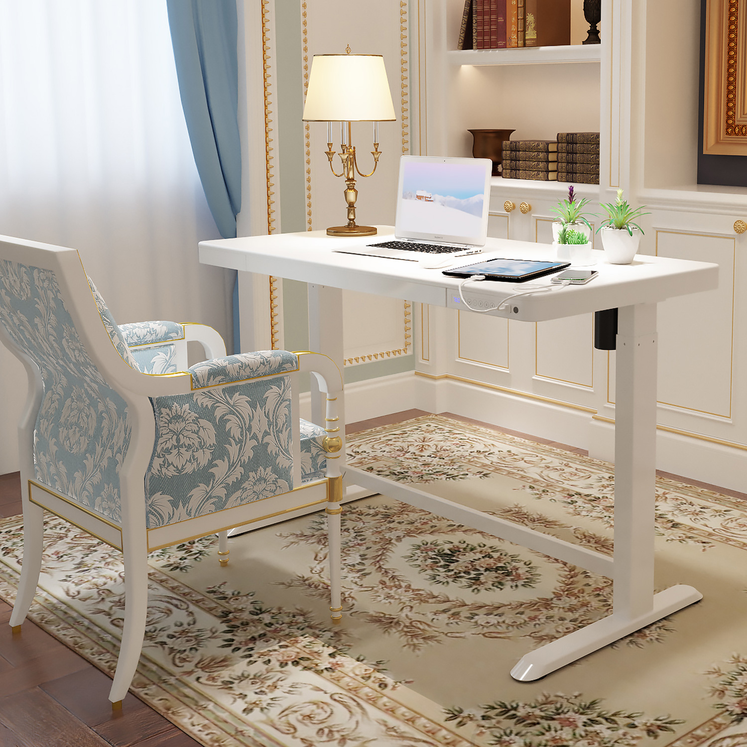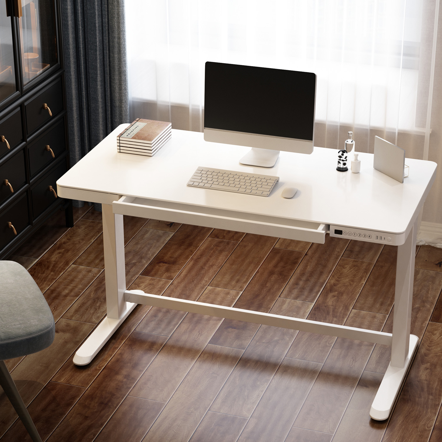 Rašomasis stalas ERGO 1 variklio 120x60xH72-121cm, baltos spalvos. Reguliuojamo aukščio rašomasis stalas – protingas pasirinkimas visai šeimai! Pasirūpinkite, kad jūsų ar jūsų vaikų darbo aplinka būtų patogi, ir išlikite sveiki! Vienas elektros variklis ir dvifazė kėlimo sistema užtikrina greitą, sklandų ir tylų (<50 dB) judėjimą. Kėlimo greitis 25 mm/s. Stalo aukštį galima reguliuoti nuo 72 iki 121 cm. Valdymo pulto atmintyje išsaugomos 4 padėtys. Didžiausia apkrovos keliamoji galia esant visam greičiui 50 kg. Įvesties įtampa: 100 V-240 V. Stalas turi apsauginį užraktą, 3 USB įkrovimo lizdus ir didelį skyrių. 120×60 cm balto melamino stalviršis. Dvigubo kvadrato formos plieninių vamzdžių konstrukcija užtikrina stalo kojos stabilumą net aukščiausioje padėtyje. Metalinės dalys padengtos baltos spalvos milteliniu būdu. Stalas surinktas ir supakuotas taip, kad jį būtų galima greitai ir lengvai sumontuoti ir nereikėtų jokių įrankių.