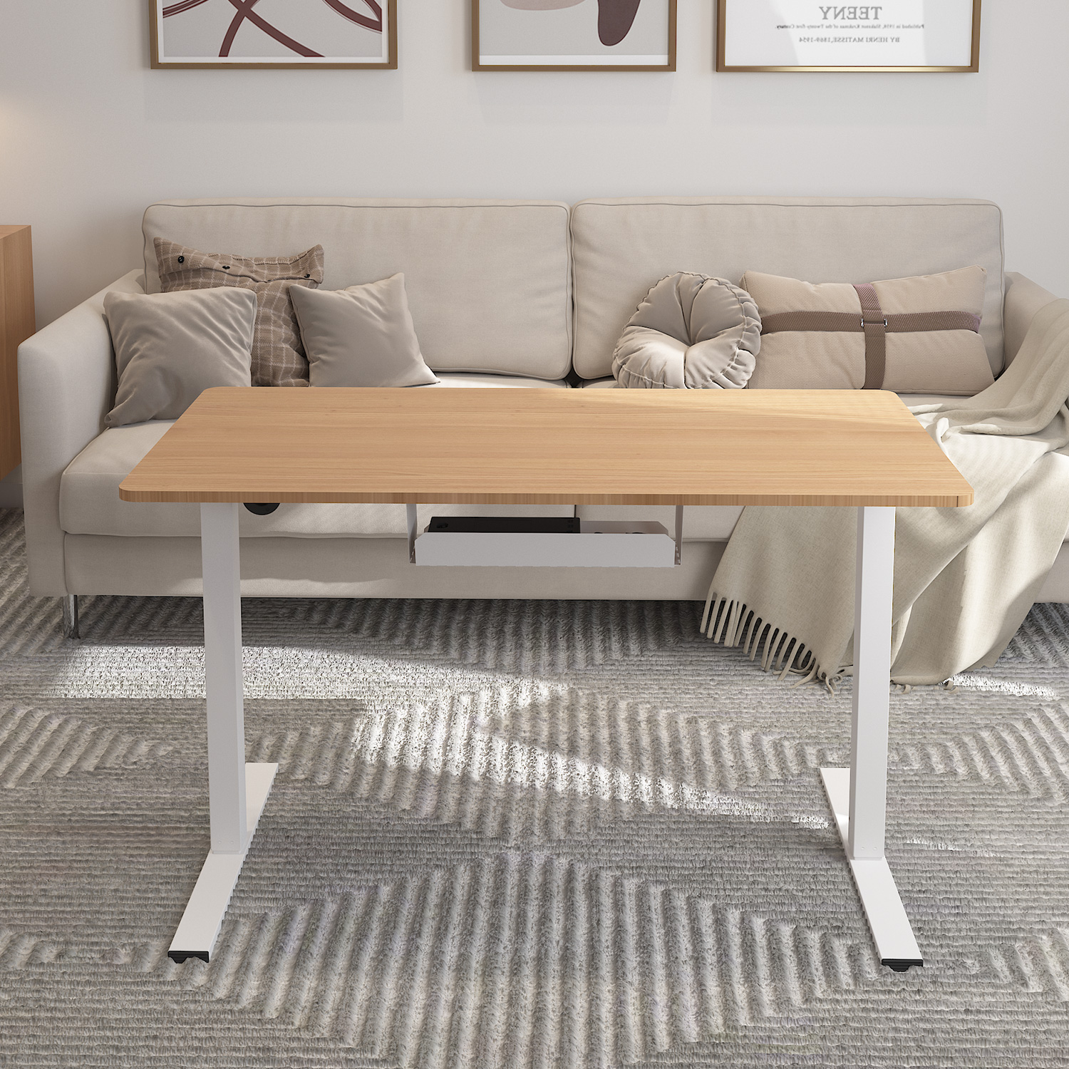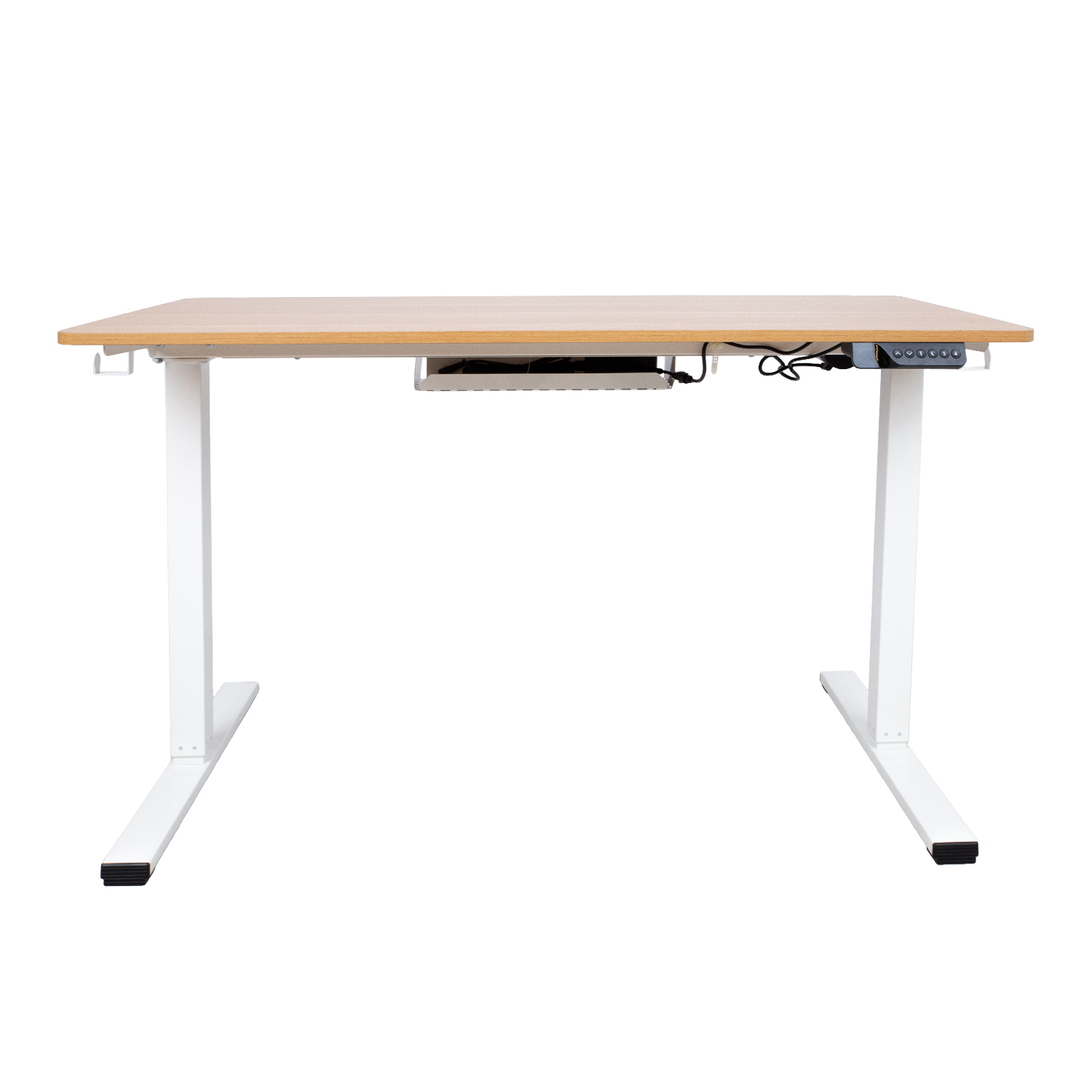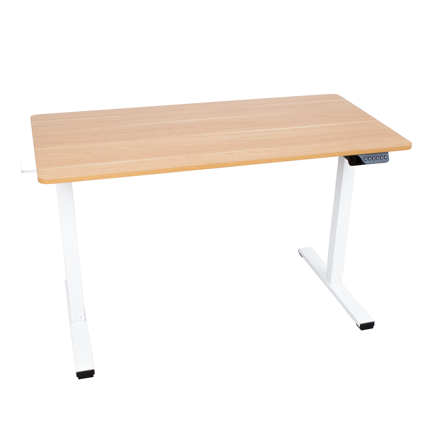 Rašomasis stalas ERGO 1 variklio 120x60xH73-121cm, baltas / ąžuolinis. Reguliuojamo aukščio rašomasis stalas – protingas pasirinkimas visai šeimai! Pasirūpinkite, kad jūsų ar jūsų vaikų darbo aplinka būtų patogi, ir išlikite sveiki! Vienas elektros variklis ir dvifazė kėlimo sistema užtikrina greitą, sklandų ir tylų (<50 dB) judėjimą. Kėlimo greitis 25 mm/s. Stalo aukštį galima reguliuoti nuo 73 iki 121 cm. Valdymo pulto atmintyje išsaugomos 4 padėtys. Didžiausia apkrovos keliamoji galia esant visam greičiui 50 kg. Įvesties įtampa: 100 V-240 V. Stalas turi vertikalių susidūrimų prevencijos sistemą, 2 USB įkrovimo prievadus ir daugiafunkcines lentynėles patogiam daiktų laikymui. Ekonomiška plieninė keturių kanalų vamzdžių konstrukcija yra stabili ir patikima. Visos metalinės dalys padengtos baltos spalvos milteliniu būdu. Melamino stalviršio su apsauga nuo pažeidimų matmenys 120×60 cm.