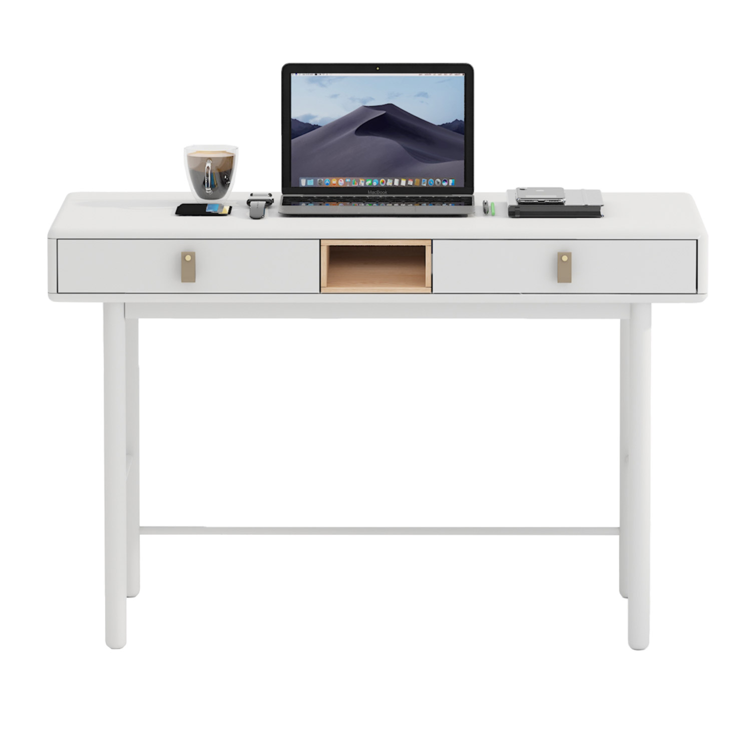 Rašomasis stalas IRIS 120x60xH75cm, baltos spalvos. Stalo stalviršis, korpusas ir stalčių priekiai pagaminti iš 18 mm MDF. Stalo kojos ir pagrindo rėmas pagaminti iš medžio masyvo. Stalas padengtas patvariais poliuretano dažais. Stalčiai turi būti odines rankenas.