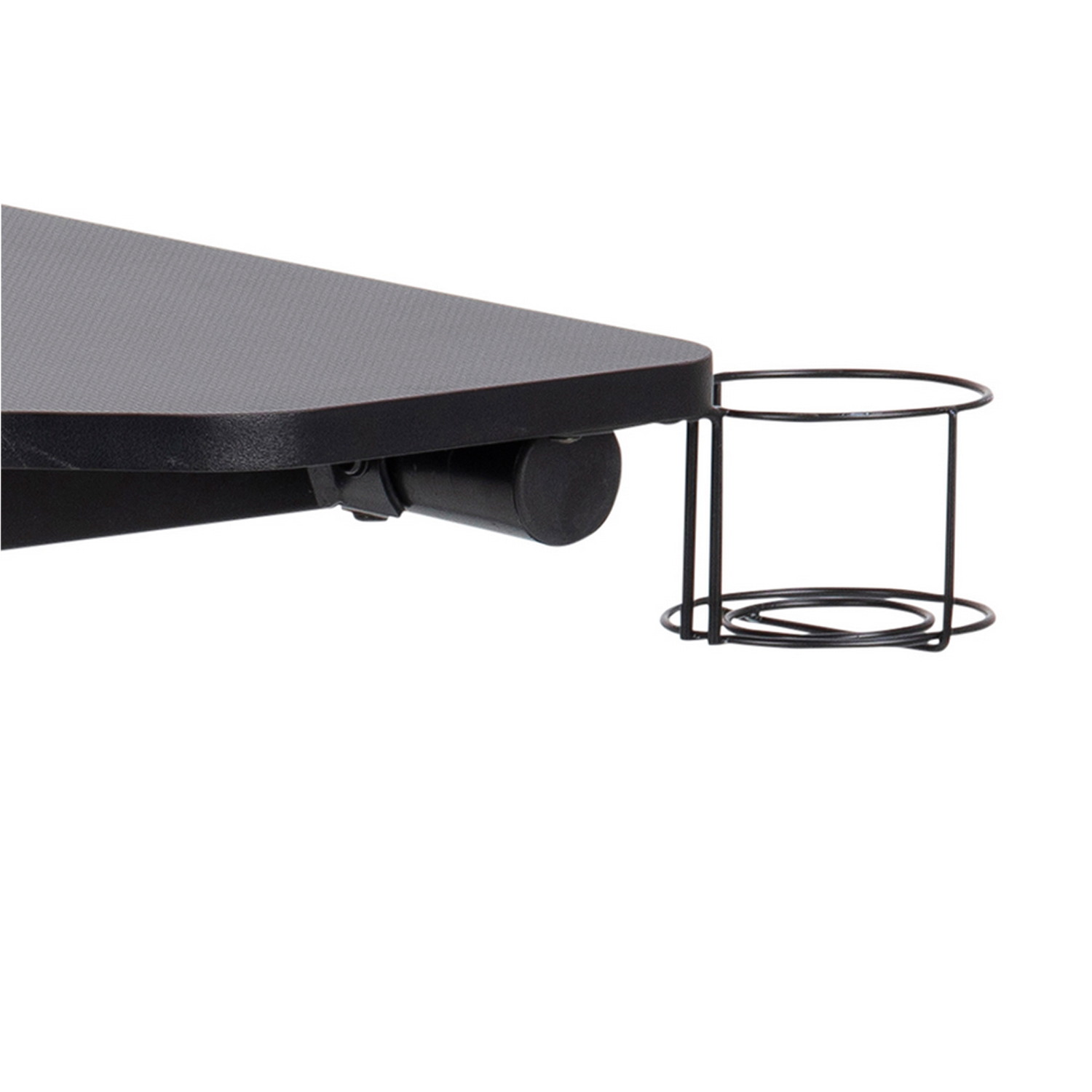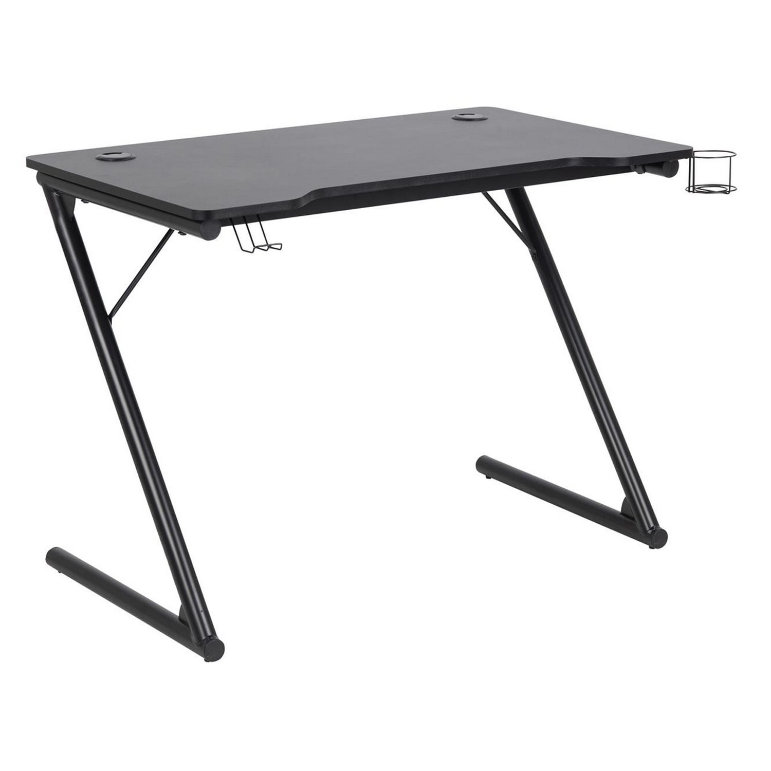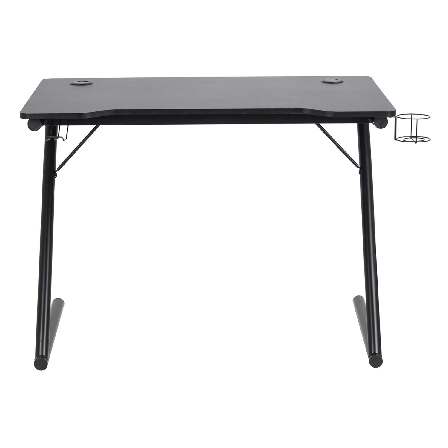 Rašomasis stalas TROOPER 100x60xH75cm, juodos spalvos. Rašomasis stalas yra būtinas bet kurių namų priedas, leidžiantis patogiau naudotis kompiuteriu arba susikurti praktišką namų biuro erdvę. Rašomasis stalas pagamintas iš MDF, melamino, juodos spalvos. Rašomasis stalas turi juodą puodelio laikiklį. Kojos ir rėmas pagaminti iš juodo metalo. Stalo matmenys yra 100x60xH75 cm.