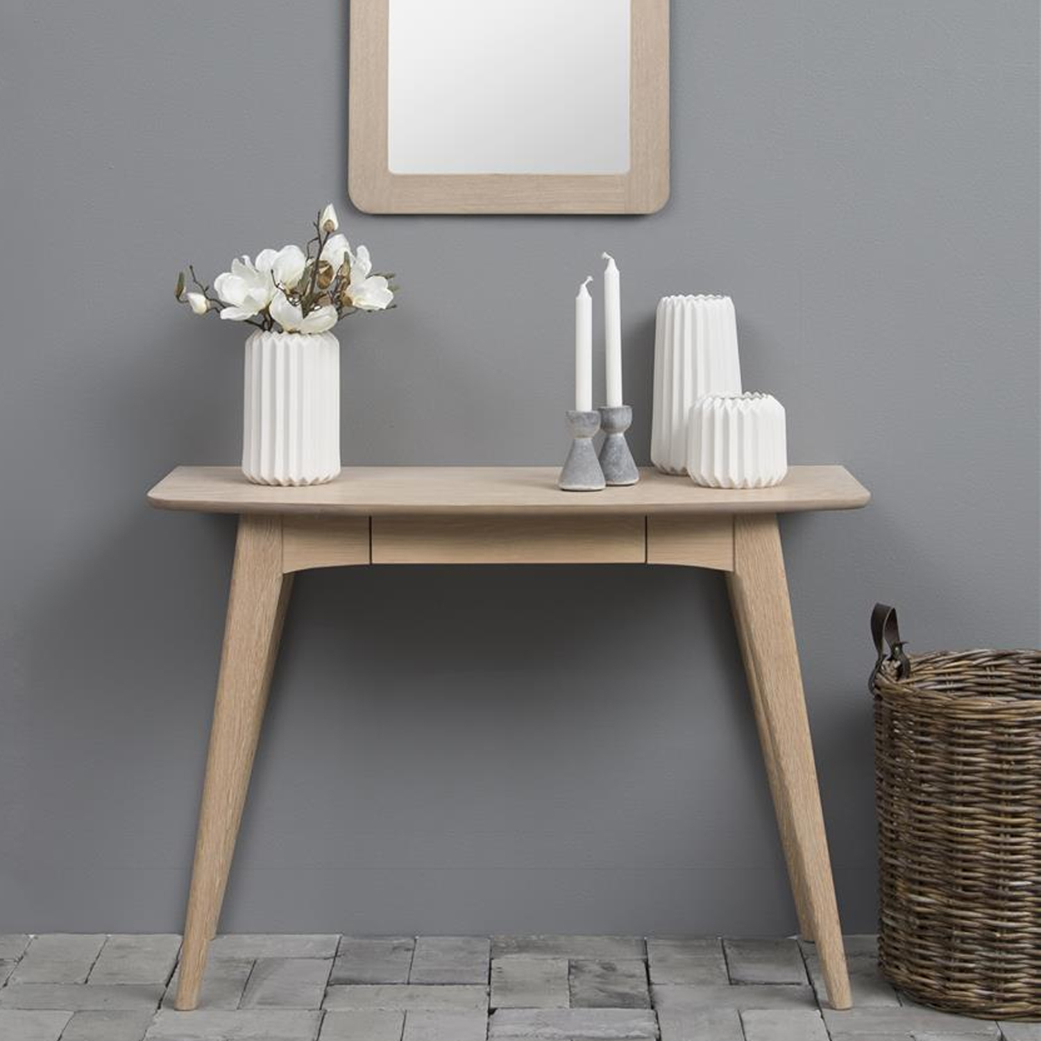 WOODSTOCK rašomasis stalas 105x45xH74cm, ąžuolas. Rašomasis stalas yra būtinas bet kurių namų priedas, leidžiantis patogiau naudotis kompiuteriu arba susikurti praktišką namų biuro erdvę. Medžio atspalvio rašomieji stalai idealiai tinka naudoti namų aplinkoje, nes šilta medžiaga ir švelnūs tonai puikiai dera su įvairiais baldais. Rašomasis stalas turi stalčių. Stalviršis pagamintas iš ąžuolo. Apdaila: alyvuota baltu pigmentu. Gaminio matmenys 105x45xH74 cm.