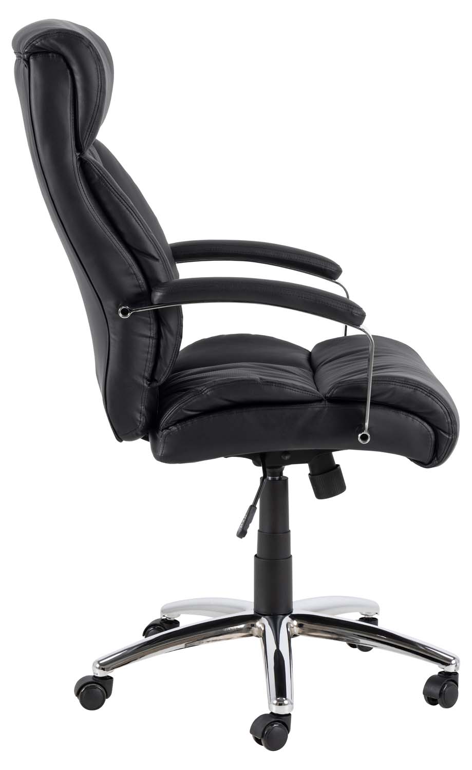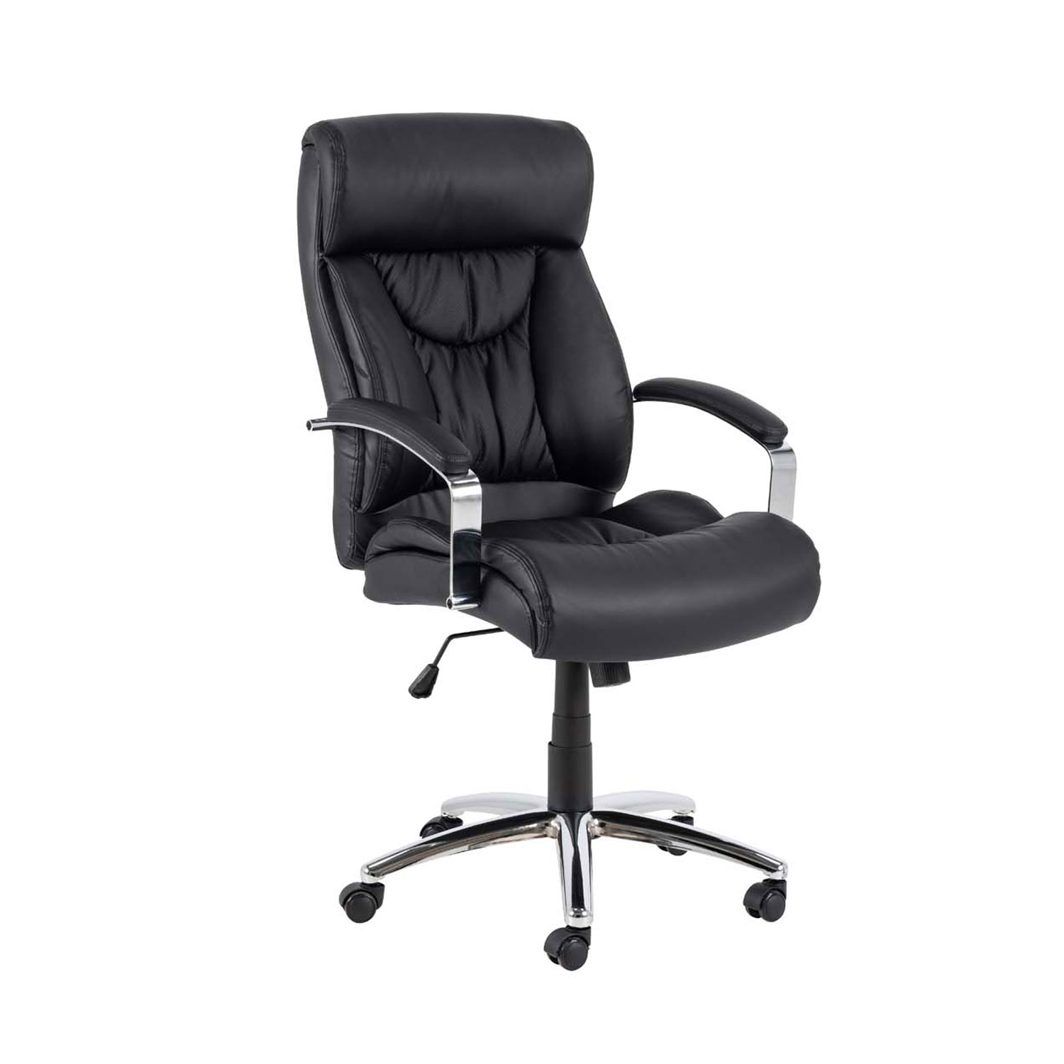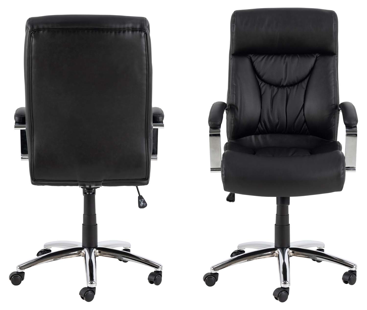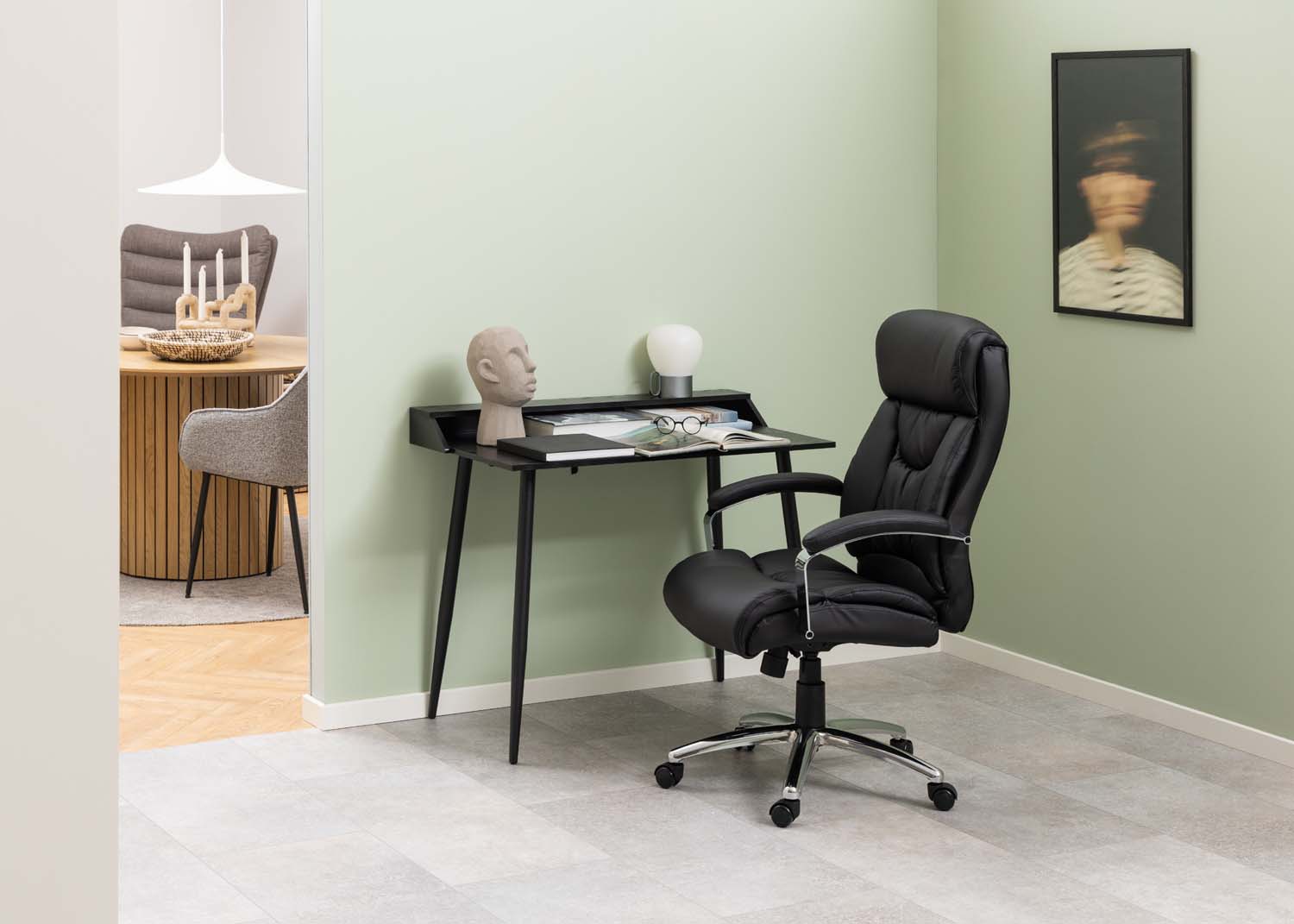 Estetiškai įspūdinga kėdė aptraukta juoda dirbtine oda. Dėl minkštų atlošo ir sėdynės atlošo kėdė yra dar patogesnė. Kėdė turi dujinį keltuvą, kuriuo reguliuojamas 51,5-60,5 cm aukštis. Be to, kėdė turi pakreipimo ir pasukimo funkciją. Kėdė pagaminta iš praktiškų ir lengvai prižiūrimų medžiagų. Gaminio matmenys 64,5x83xH120 cm.