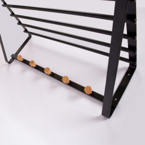 Baras FRANK su batų lentyna ant ratukų 83x43xH93,5-168 cm, sidabro chromo spalva. Keliamoji galia 15 kg.