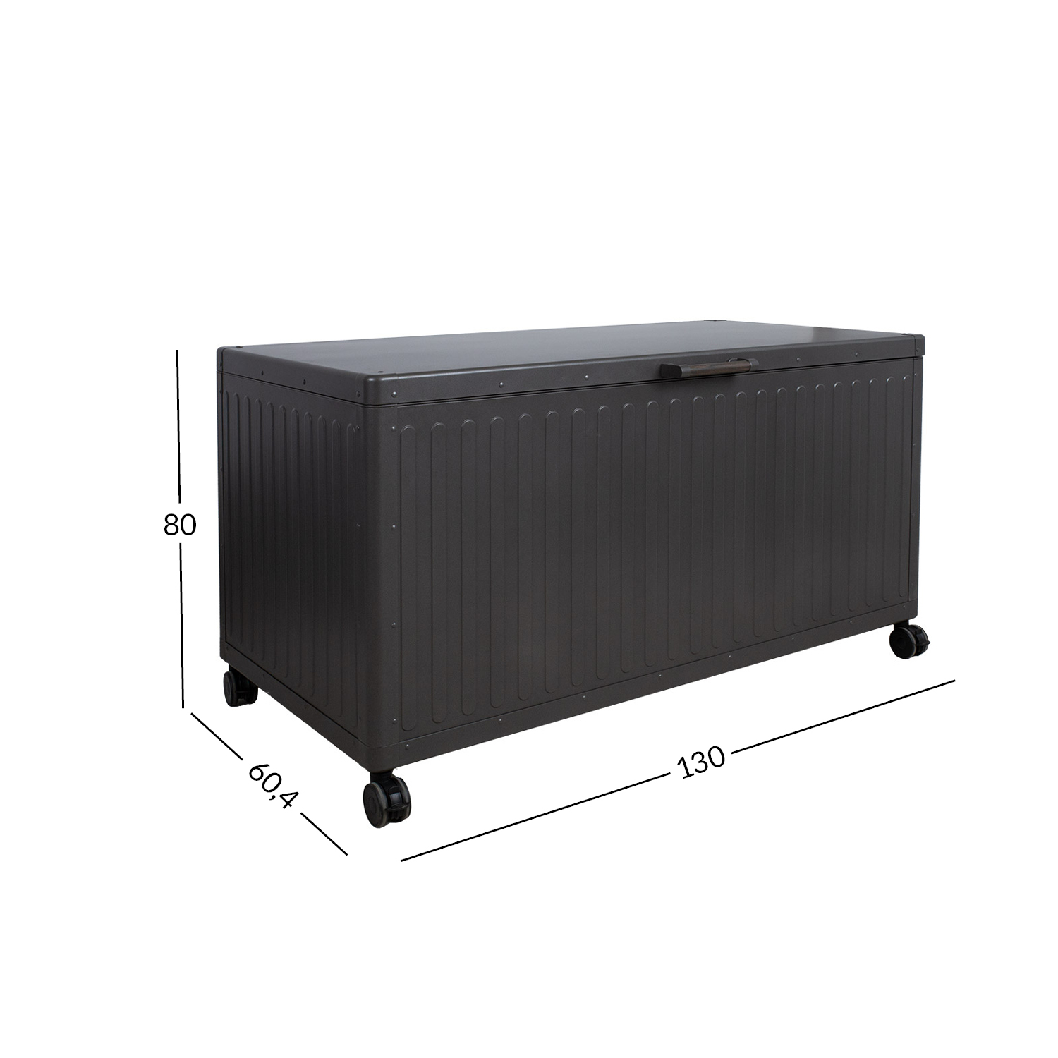 Bendrieji dėžės matmenys yra 1300x604xH700 mm, aukštis su ratukų pagrindu 800 mm.