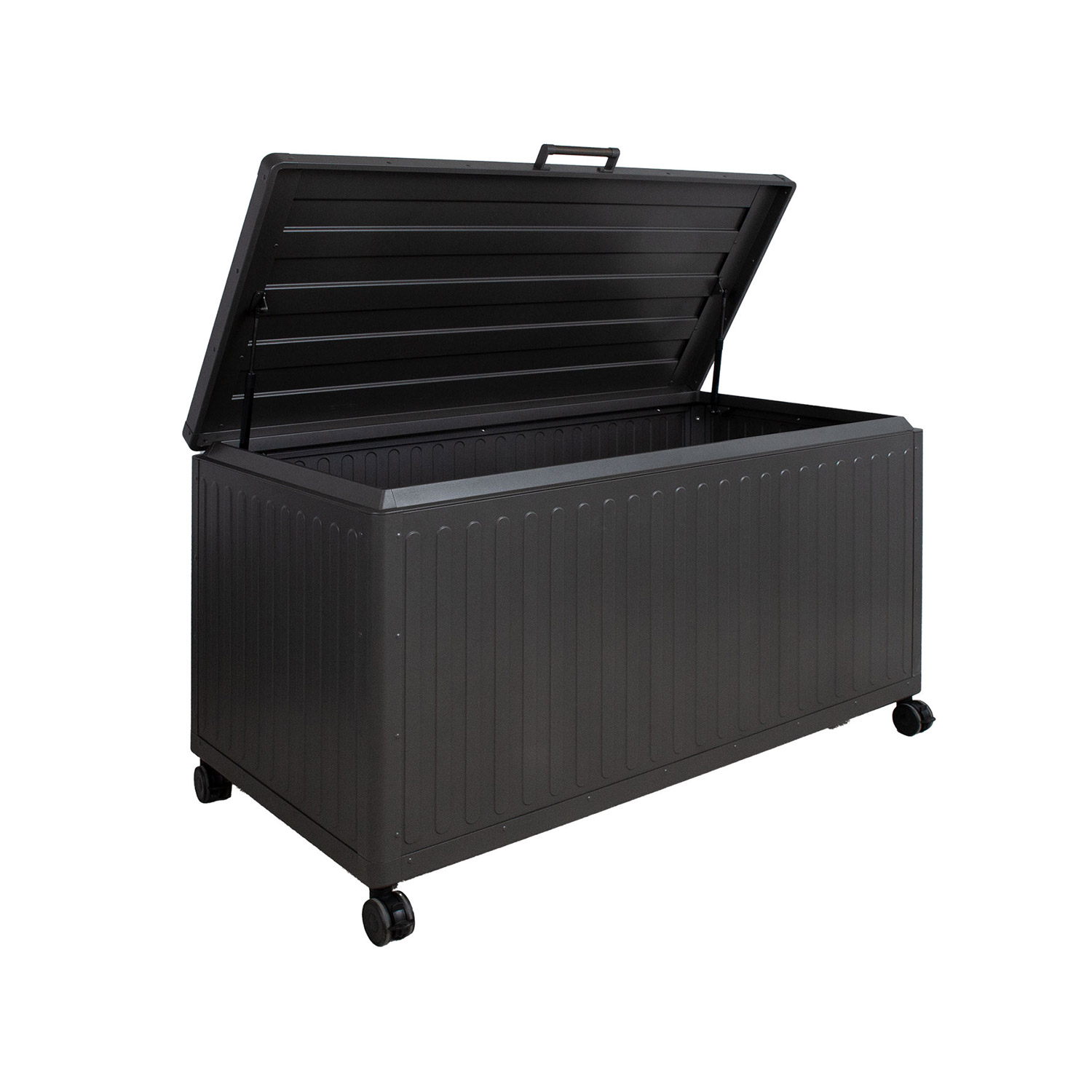 Ši praktiška ir tvirta dėžė yra puikus sprendimas sodo baldams, lauko žaislams ar kitiems sodo reikmenims laikyti ir apsaugoti nuo oro sąlygų.