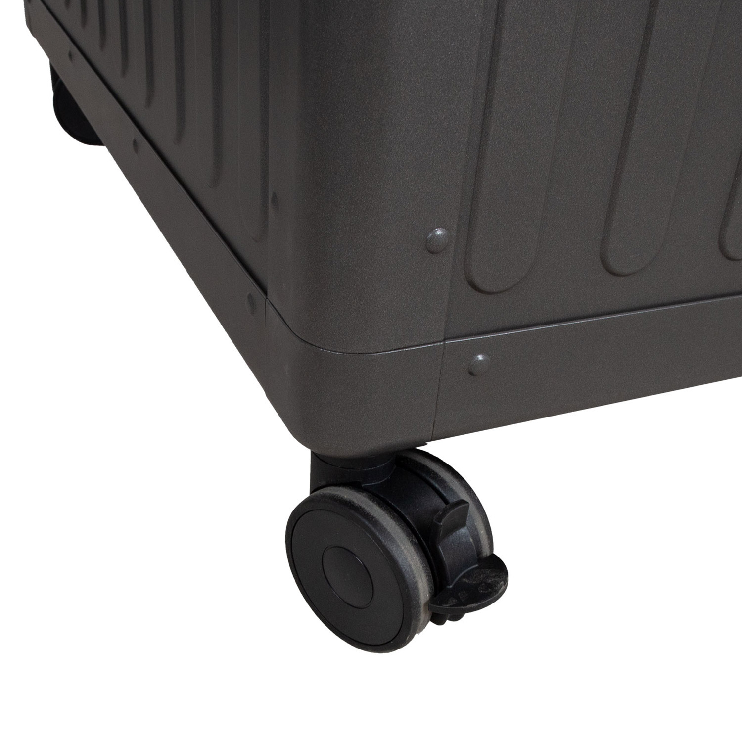 Dėl amortizatorių dėžės dangtį atidaryti lengva ir patogu. Dideli ratai leidžia dėžę lengvai perkelti.