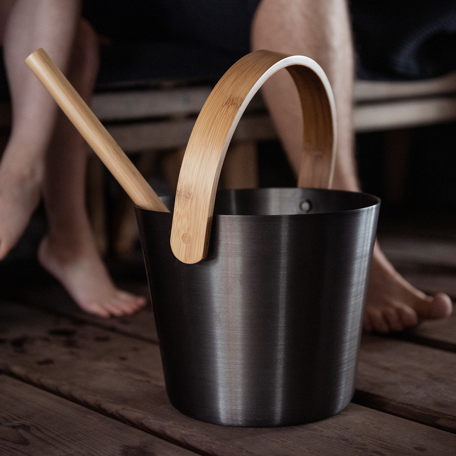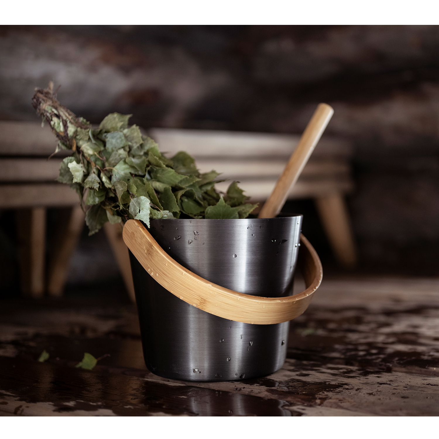 Saunos kibiras RENTO BROWN, 5L, D23xH35 cm, aliuminis: rudas, bambuko rankena