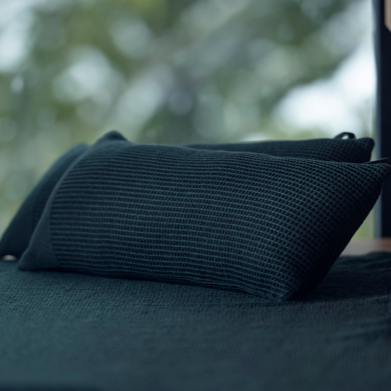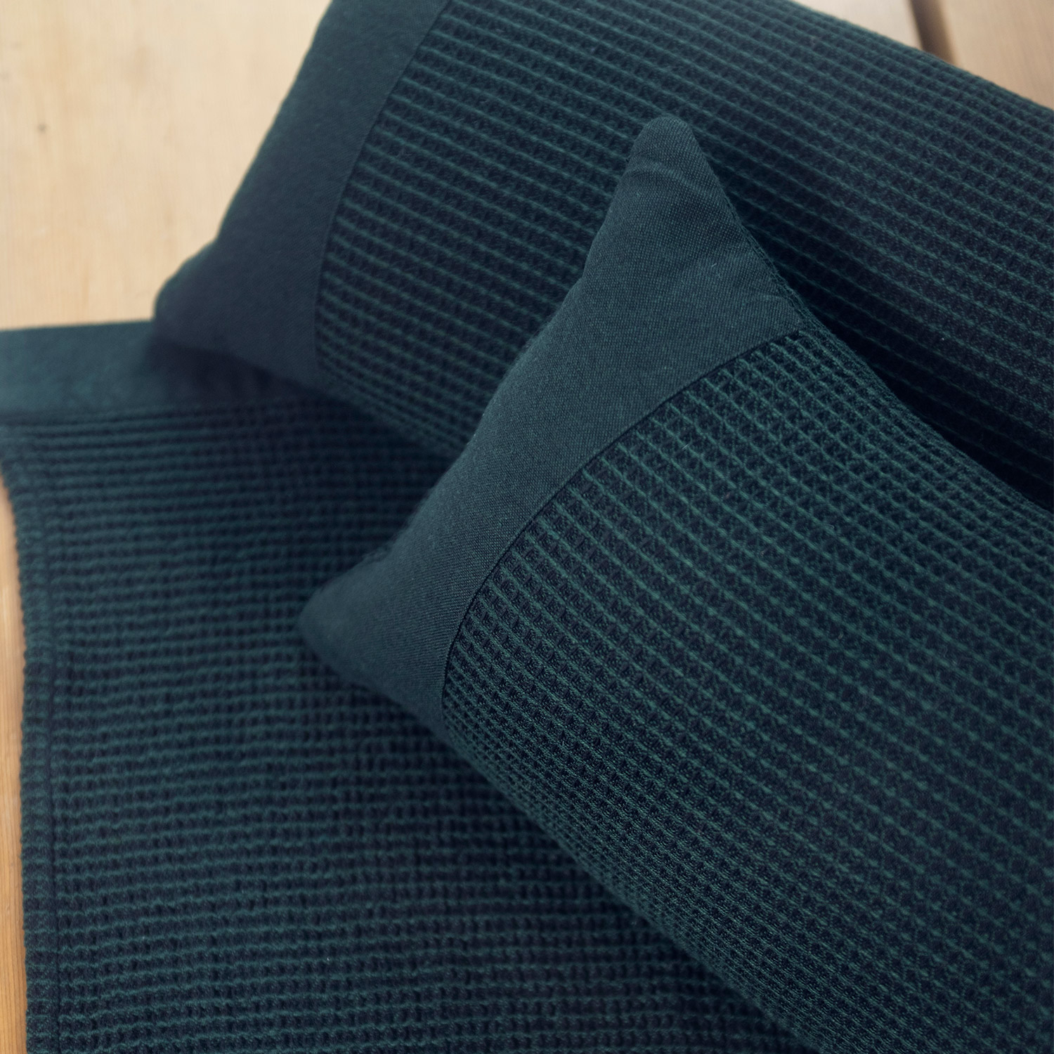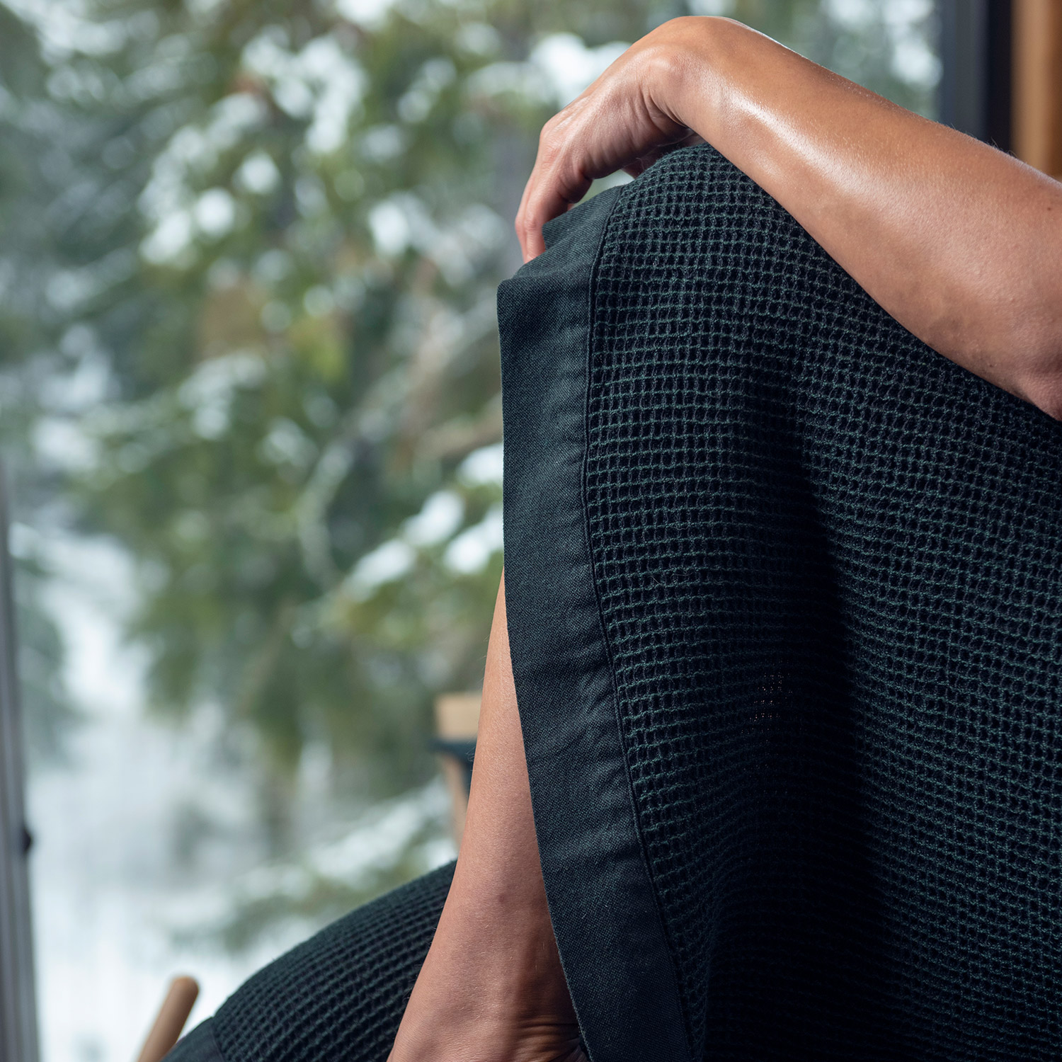 Saunos pagalvėlė RENTO GREEN 50x60cm. Patogus vientisas pirties sėdynės užvalkalas su šamotiniu kraštu. Gaminys pagamintas iš perdirbtos medvilnės, suteikiančios audiniui natūralaus minkštumo ir pikantiškos tekstūros.