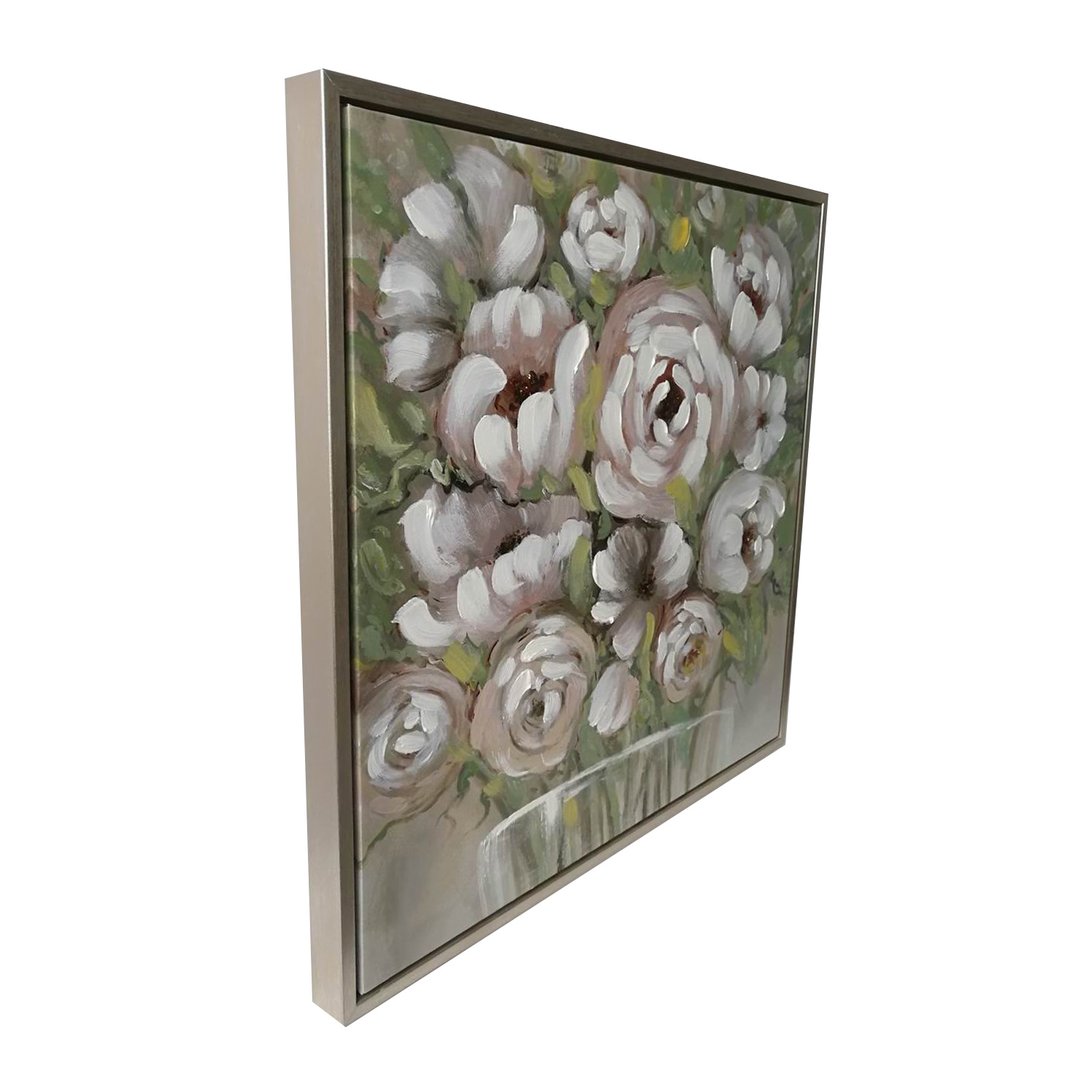 Sienų meno kūrinys WALLY 60x60cm, baltos gėlės
