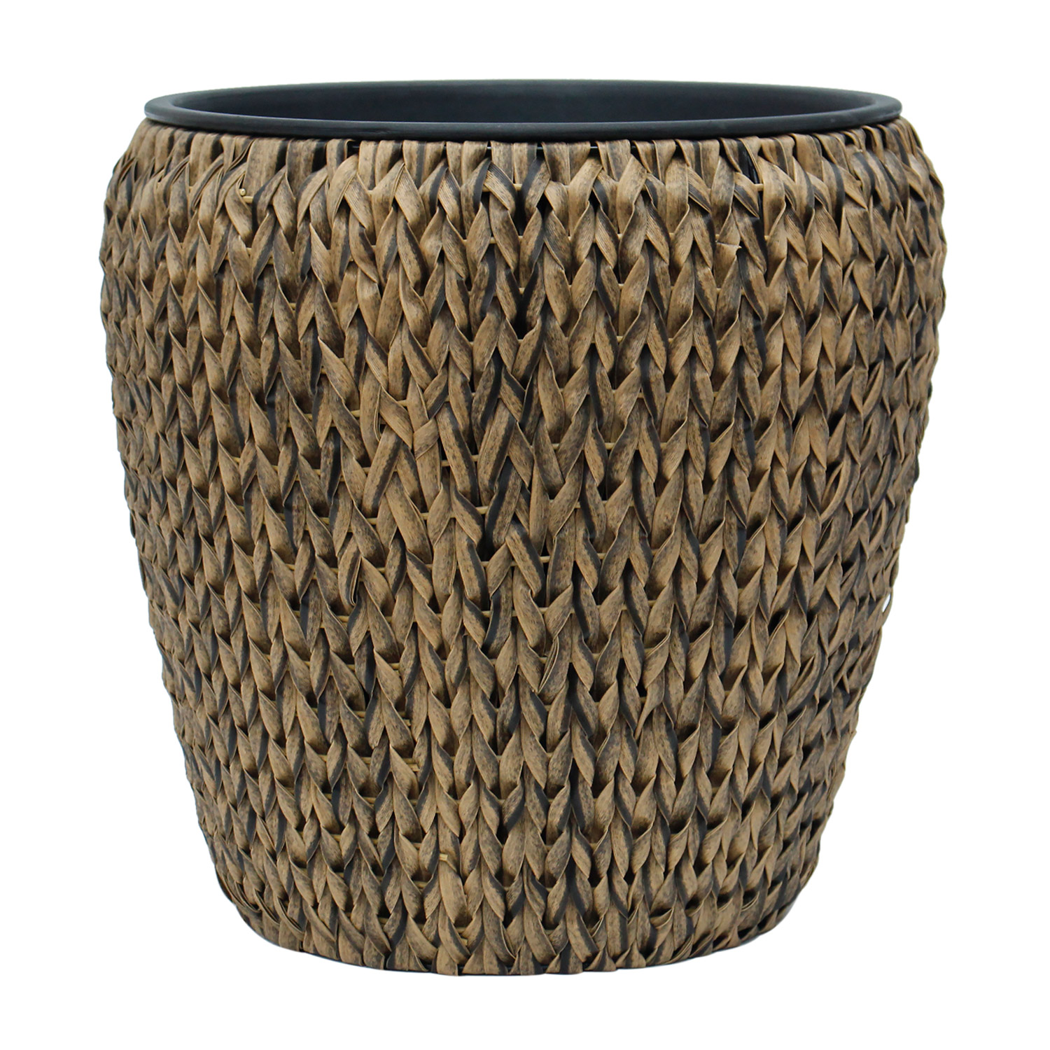 Gėlių vazonas WICKER 46x46xH46cm, rudos spalvos. Metalinis vazonas karkasas padengtas plastikiniu pynimu. Vidinio plastikinio maišelio matmenys D38xH38cm. Vidinis vazonas neturi skylės.