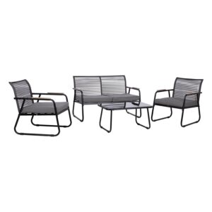 Metalinis vazono rėmas padengtas plastikinėmis pintinėmis.