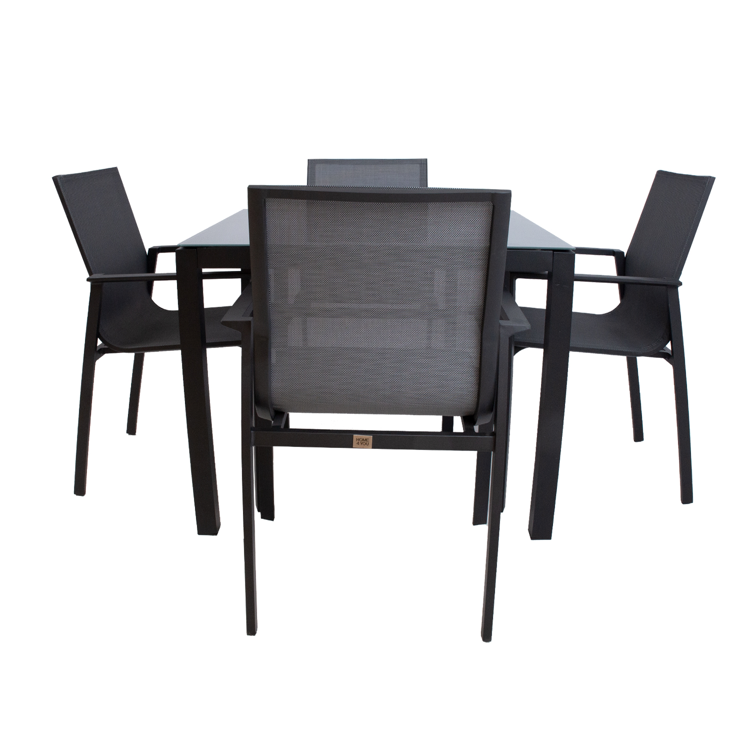 Sodo baldų komplektas AMALFI stalas ir 4 kėdės. Stalo matmenys 90x90x74 cm. Stalo stalviršis: 5 mm grūdintas stiklas. Stalo ir kėdžių kojos bei rėmai pagaminti iš aliuminio ir padengti pilka milteline danga. Tekstilinė kėdžių sėdynė praleidžia orą, greitai džiūsta ir yra lengvai valoma. Kėdes galima sukrauti viena ant kitos, kad jas būtų lengva ir taupant vietą laikyti. Bendrieji kėdės matmenys yra 58x65xH90 cm. Ribinis svoris 120 kg. PRIEŽIŪRA: Pasibaigus vasaros sezonui rekomenduojame sodo baldus laikyti patalpoje. Pasibaigus vasaros sezonui, sodo baldus reikėtų laikyti sode. Sandėliavimui naudokite sausą ir gerai vėdinamą patalpą.