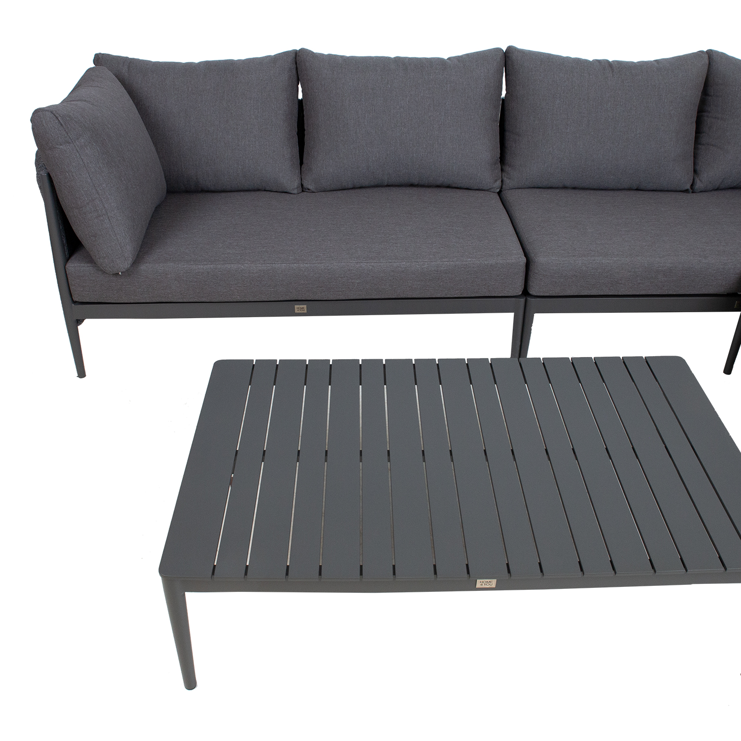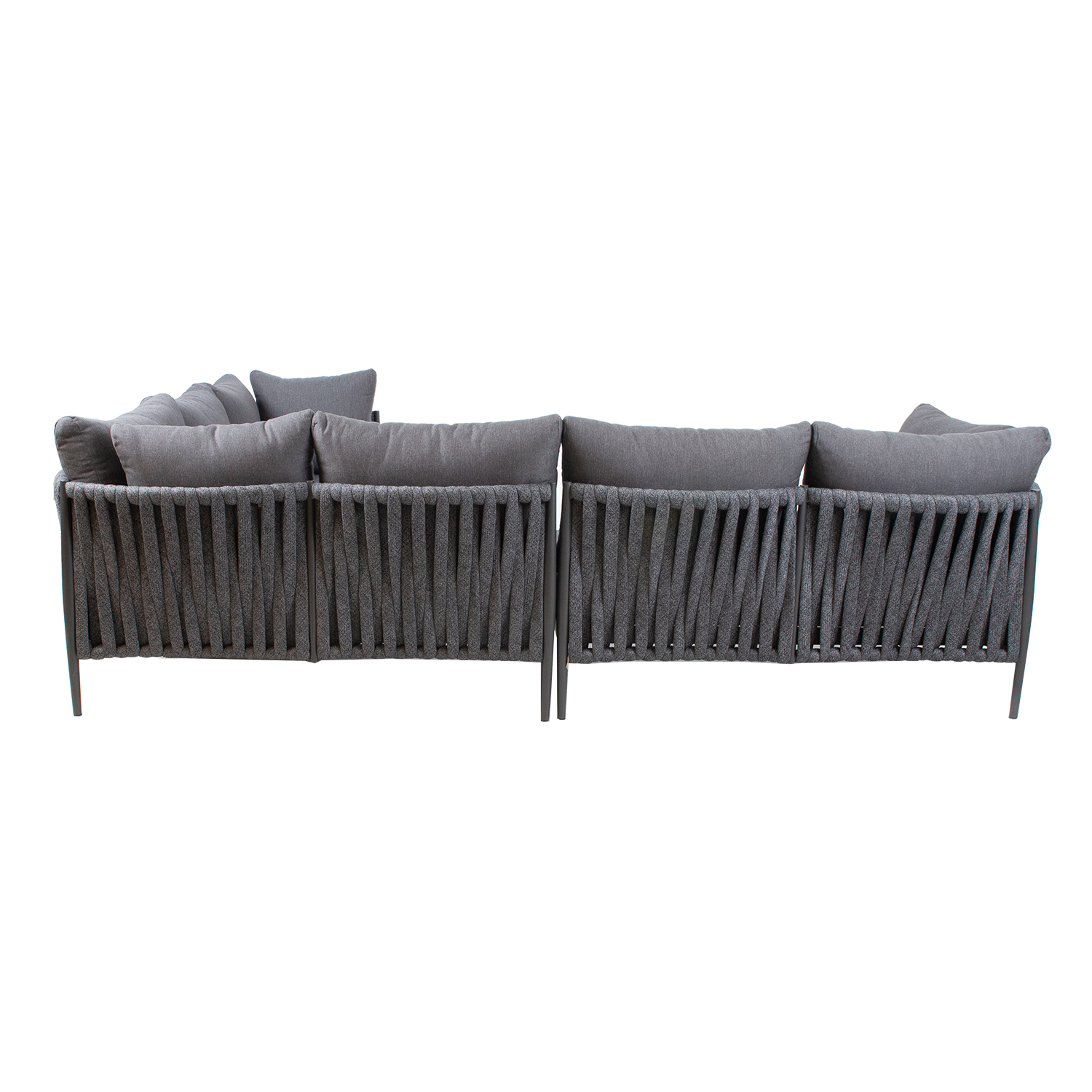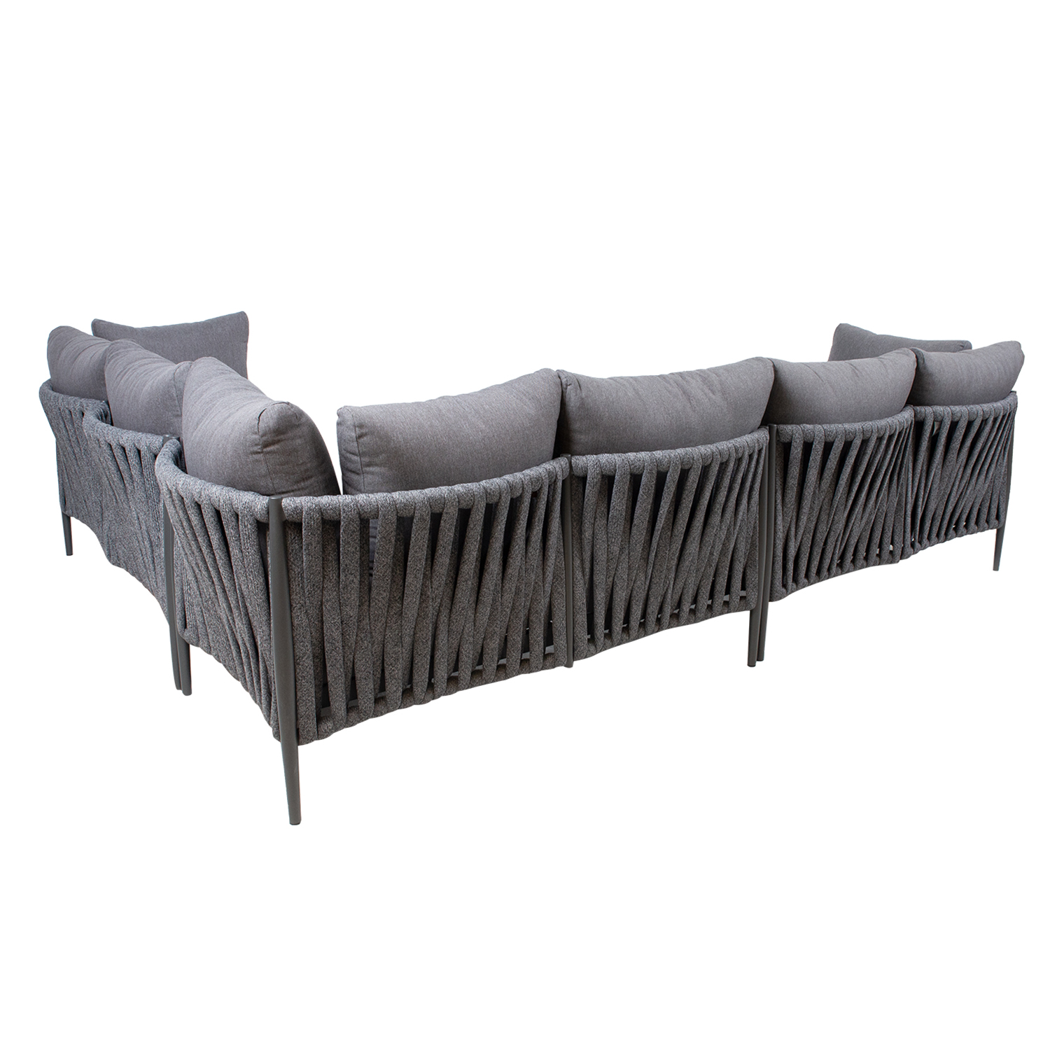 Sodo baldų komplektas BREMEN stalas ir kampinė sofa, pilkos spalvos. Kampinę sofą sudaro trys 2 vietų dalys. Sofos aliuminio rėmas, padengtas pilku milteliniu būdu dažytu aliuminiu, padengtas įspūdingu virvių pynimu. Į komplektą įeina pagalvėlės. Pagalvėlės pagamintos iš pilko poliesterio audinio. Stalo stalviršis ir rėmas pagaminti iš aliuminio. Sofos 2 vietų sekcijos matmenys yra 152x83xH71 cm. Stalo matmenys 120x70xH37 cm. Sofos moduliai tiekiami su jungiamaisiais laikikliais. Gaminys yra patvarus kintamomis oro sąlygomis ir lengvai prižiūrimas. Tik pagalvėles reikia apsaugoti nuo atmosferos poveikio. Rekomenduojame naudoti lauko baldų užvalkalus, kad prailgintumėte lauko baldų tarnavimo laiką. PRIEŽIŪRA: pasibaigus vasaros sezonui, rekomenduojame sodo baldus laikyti patalpoje. Pasibaigus vasaros sezonui, rekomenduojame palikti baldus sode žiemos mėnesiais. Sandėliavimui naudokite sausą ir gerai vėdinamą patalpą.